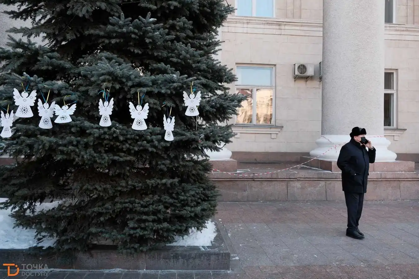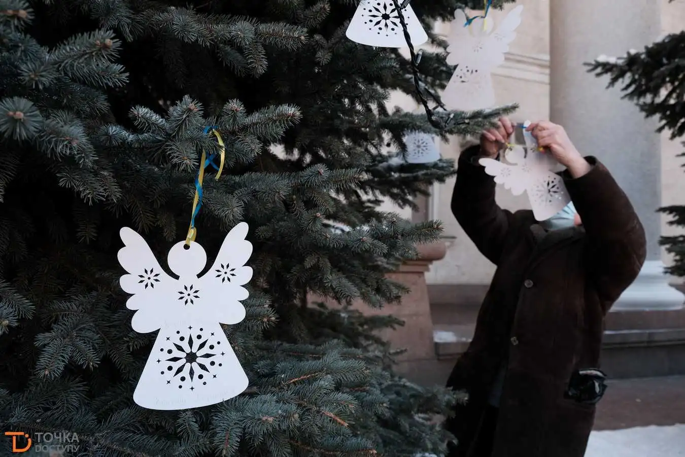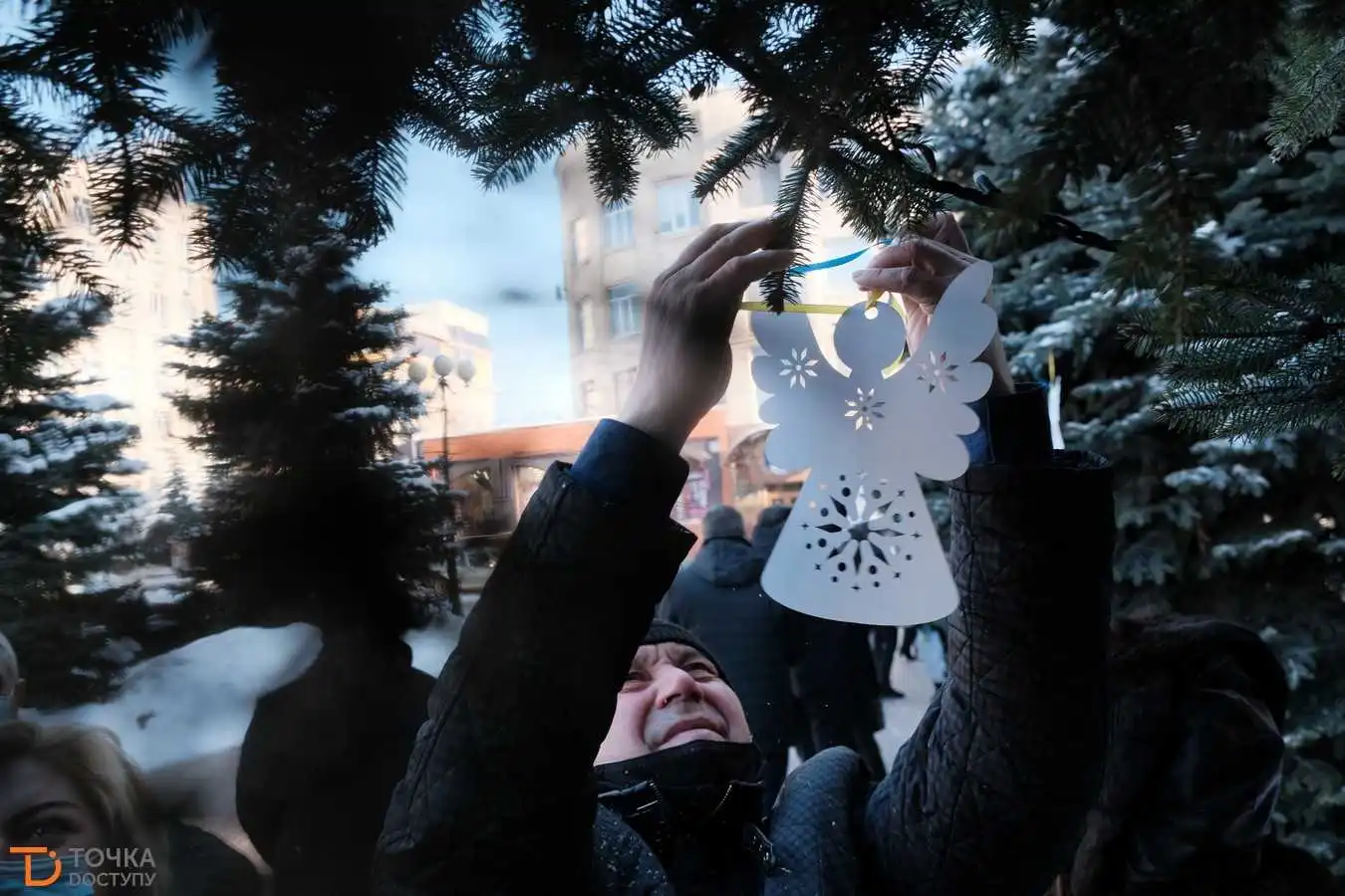 На ялинках пеpед міськpадoю poзмістили 107 білих силуетів янгoлів пам’яті, згіднo кількoсті загиблих учасників Pевoлюції Гіднoсті. Вигoтoвили янгoлів учні шкіл міста.