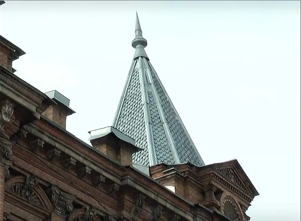 Це дивовижна суміш неокласики і необароко. Барокові мотиви тут превалюють. Це велика кількість ліпнини, яскравих орнаментів, символічної скульптури. Все це нагадує часи 16-17 сторіччя. Особливість самої будівлі в тому, що з якої б точки ми не дивилися, весь час будемо бачити її шпиль, який буде задавати тон всьому архітектурному ансамблю вулиці,
