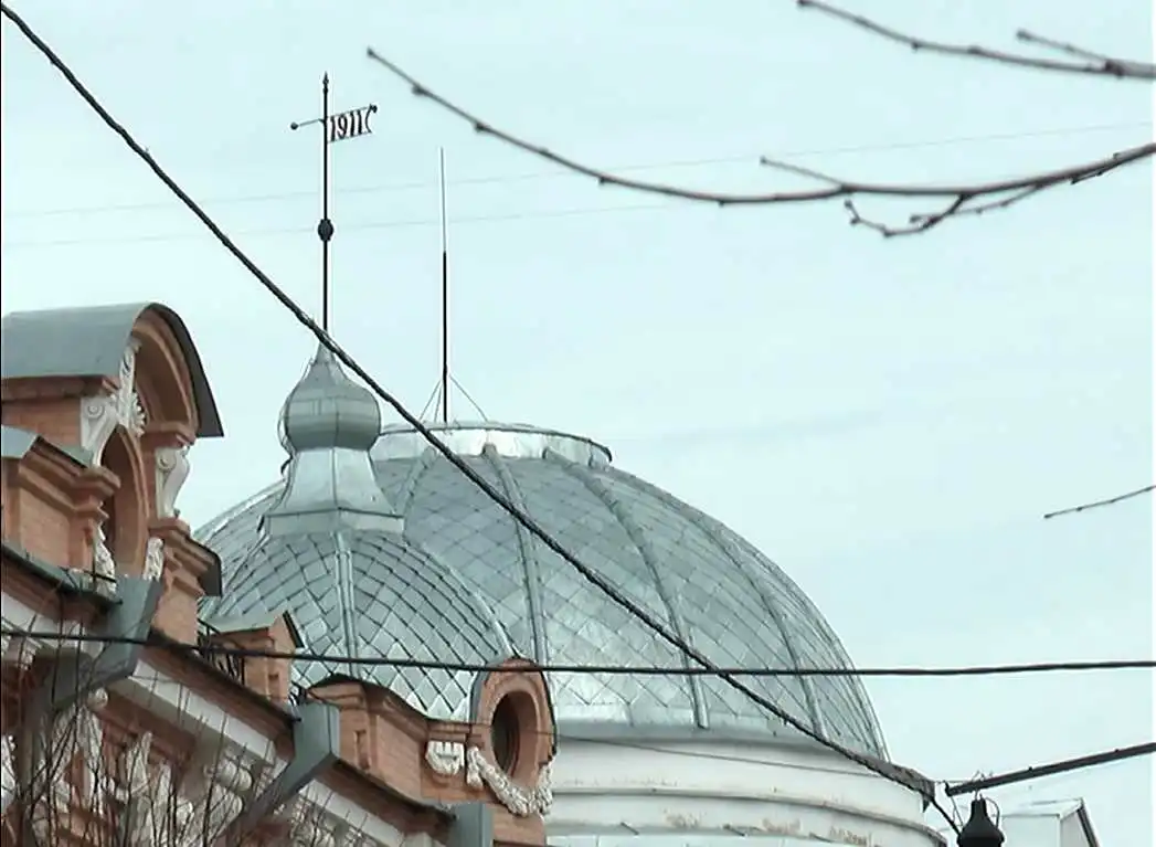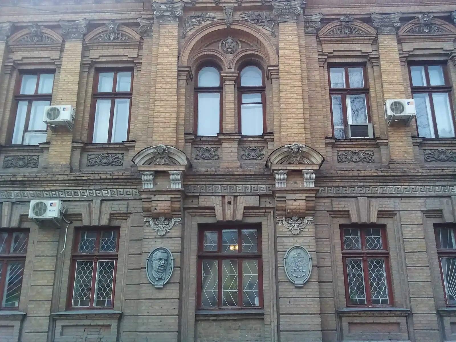 Змішування виконане таким чином, що ми бачимо лише цілісний мистецький доробок, який зовні досить умовно, але перекликається з будівлею великої трапезної на території Софії Київської. І «Гостинний двір», і будинок купця Соловйова – це були прибуткові будинки. Що це таке? От зараз ми йдемо по місту і бачимо повідомлення: «Здається в оренду». Ось це теж саме. Власник будував будівлю, з якої він мав зиск,