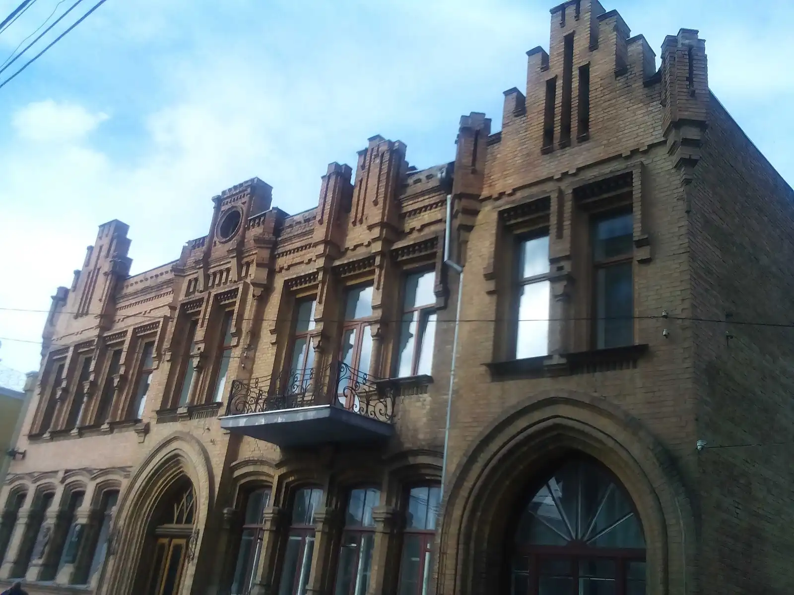 Будівля була створена за проектом Якова Паученка в мавританському стилі. Однак архітектор використовує не просто цитування, він переосмислює і робить не картинку-копію із мавританського стилю, а підводить нас до того, що це щось східне,