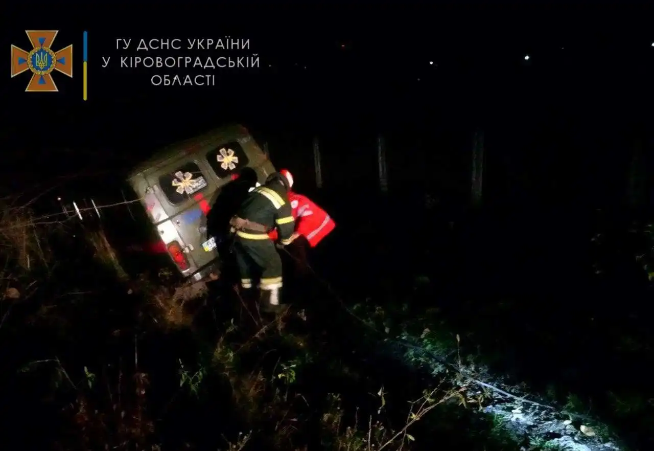 Подiя сталася по вул. Пасiонарiї в Новоукраїнцi. Медики поверталися з виклику. Рятувальники 19-ї Державної пожежно-рятувальної частини Новоукраїнки вiдбуксирували автомобiль на безпечний вiдрiзок шляху, звiдки вiн продовжив рух самостiйно.
