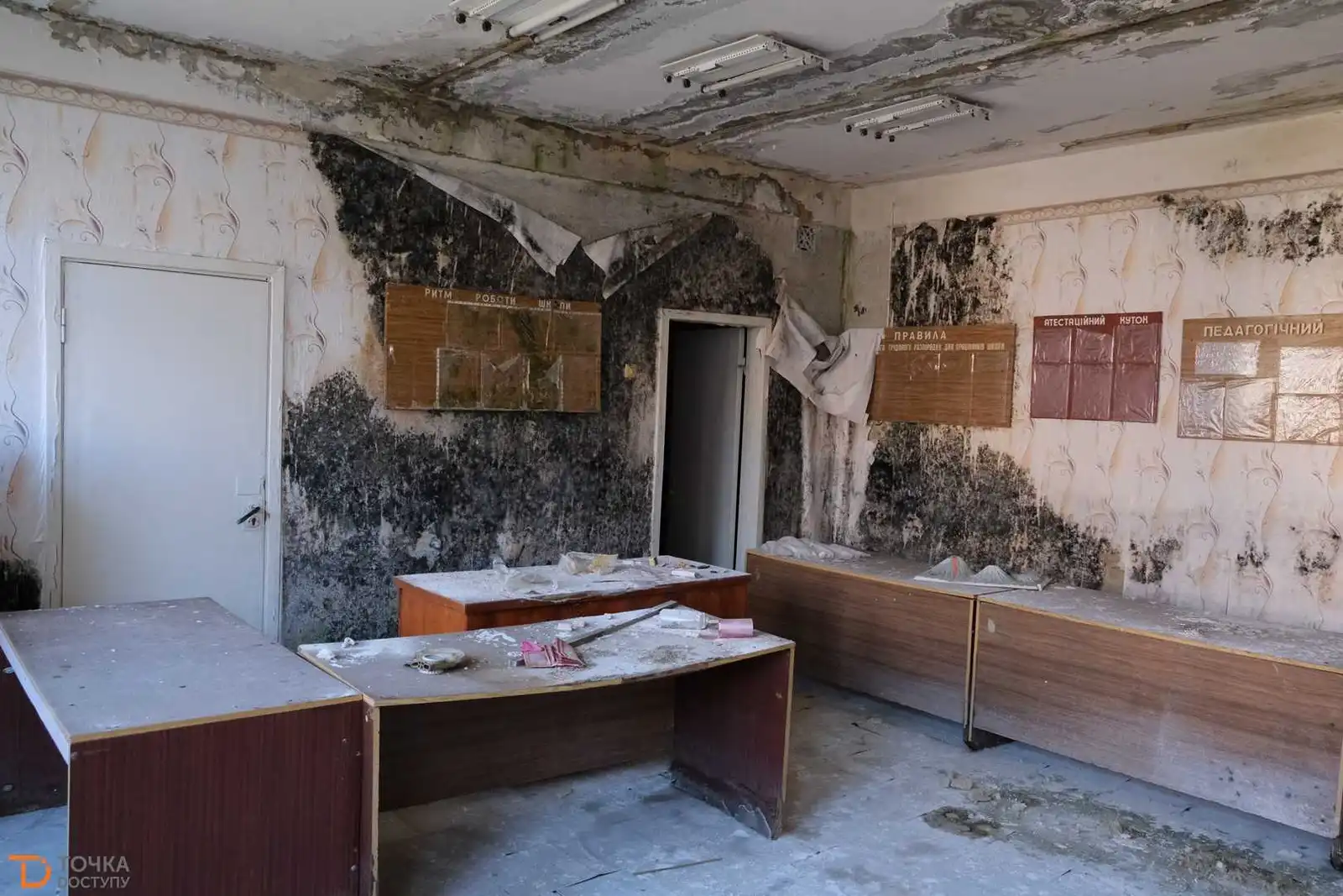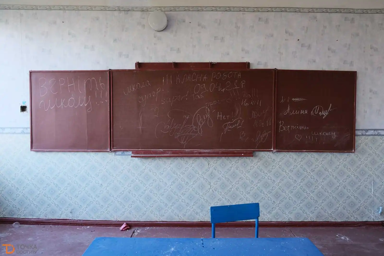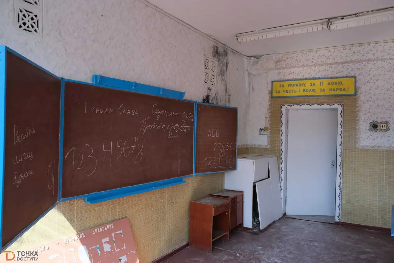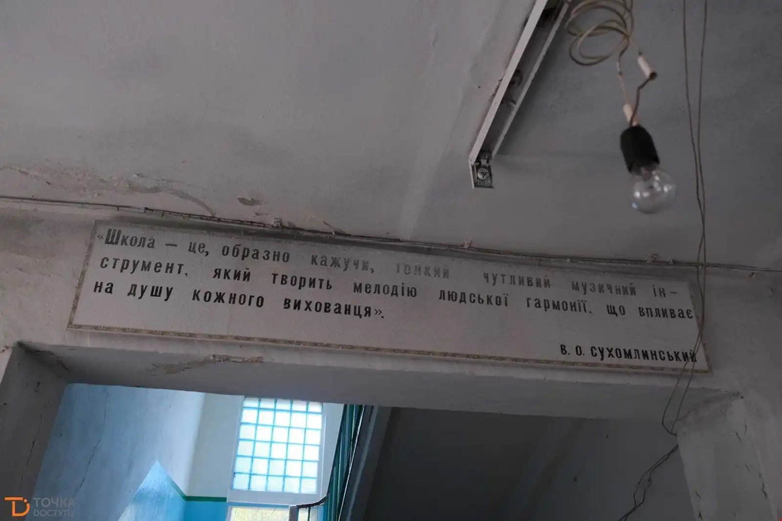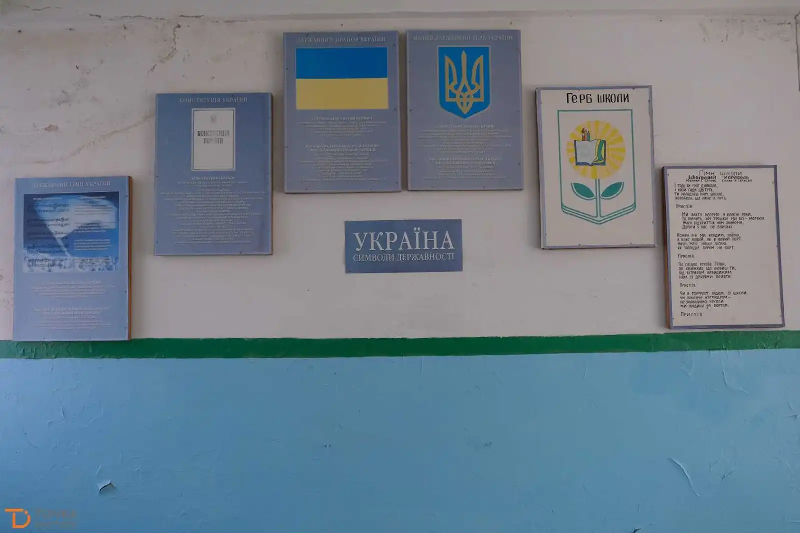 На вході до школи зберігся напис кольоровими буквами "Ласкаво просимо". У класах – парти, стільці, стенди, баян, портрет Шевченка, театральні костюми… Біля дверей їдальні – дитячі малюнки у файлах, пластикові рукомийники.