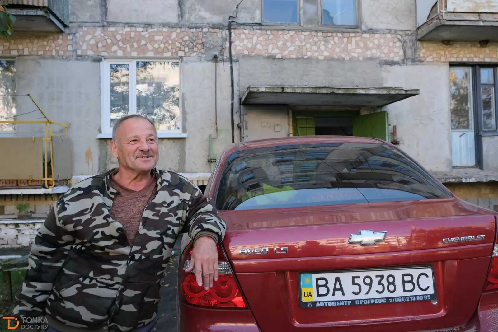 Місцевого жителя Анатолія зустрічаємо біля одного з будинків. Чоловік розповідає, що щойно приїхав з рибалки.