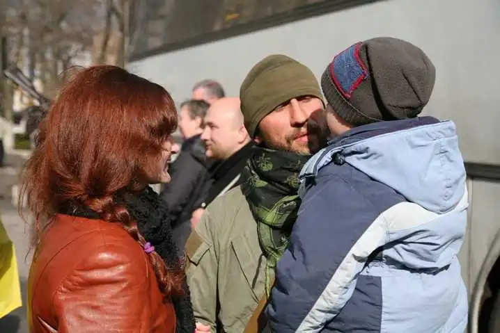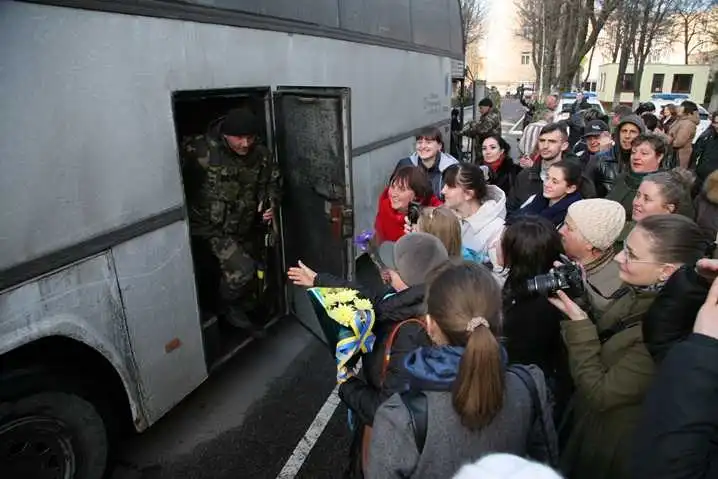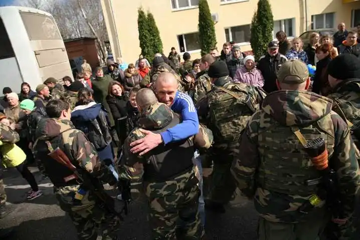 Зустрічали героїв біля бази батальйону “Кіровоград” (біля Янгола-охоронця). Батальйон перебував в зоні АТО близько місяця.