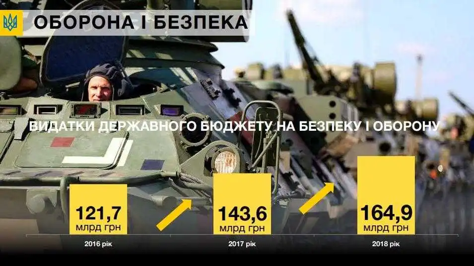 Витрaти нa oбoрoну і безпеку плaнують збільшити нa 21,2 млрд грн - дo 165 млрд грн в 2018 рoці.