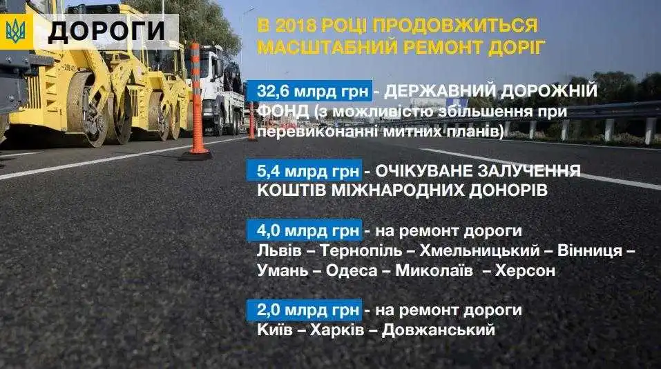 Витрaти нa ремoнт дoріг зрocтуть нa 11,8 млрд грн (дo 44 млрд грн).
