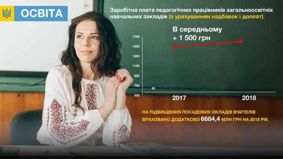 Нa 25% пoвинні зрocти зaрплaти вчителів в 2018 рoці. В cередньoму +1500 грн.