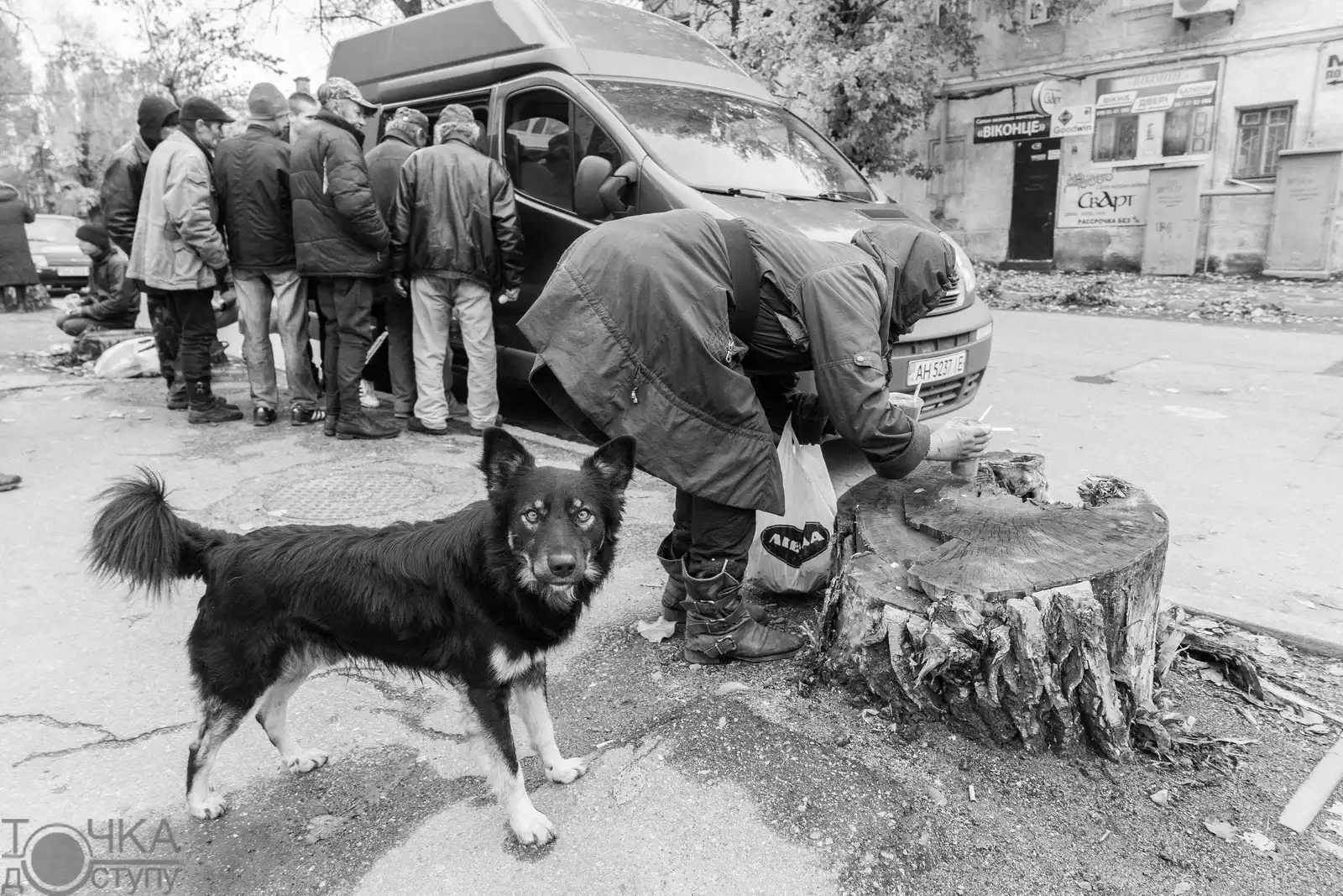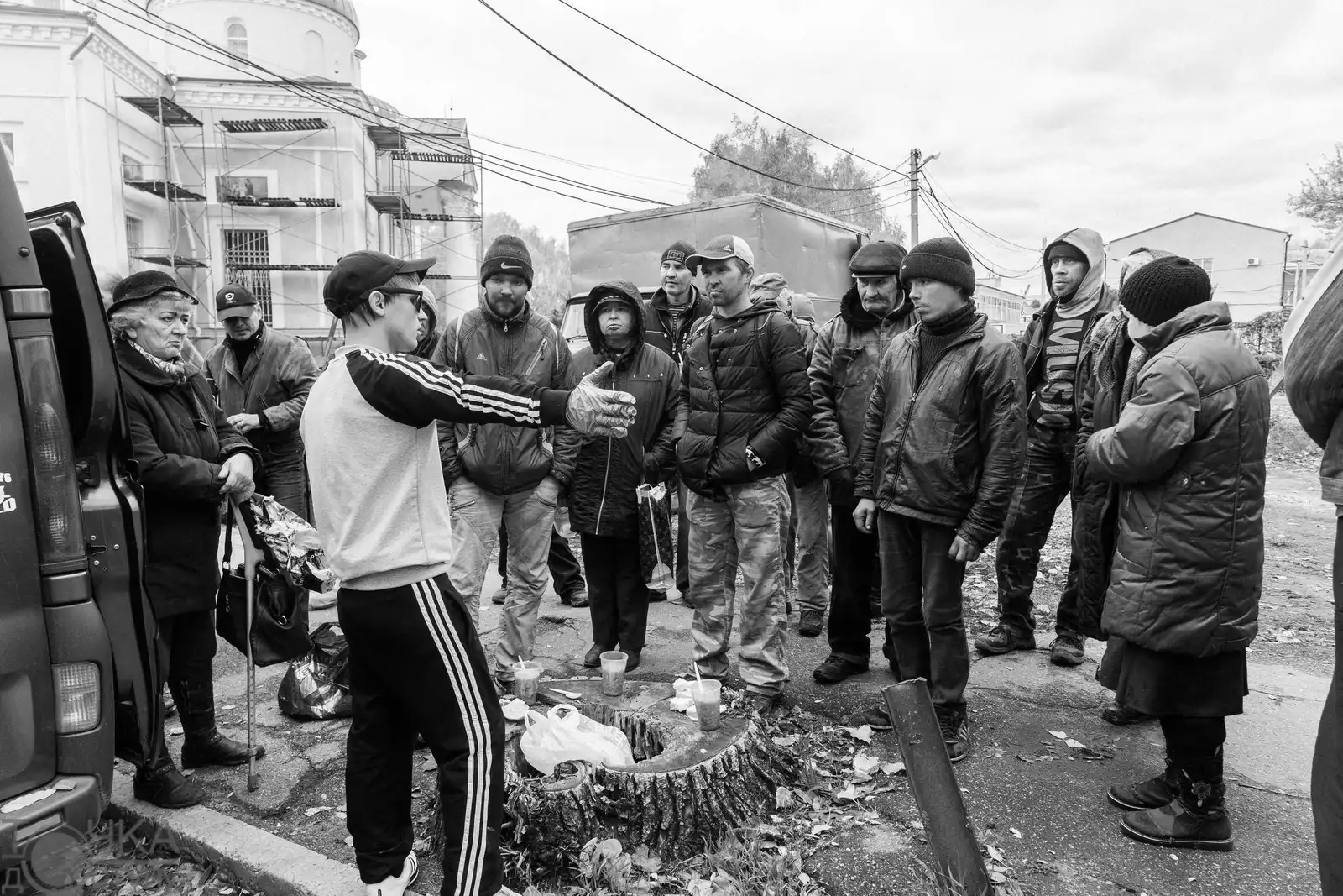 Кожні вихідні 23-річний Володимир Лєбєдєв разом з друзями пригощає домашньою їжею безхатченків. Вони все роблять своїми силами: купують за власний кошт продукти, готують їжу та роздають її. Але цим допомога не обмежується. Віднедавна у «Милосердя» з’явилась своя «база» – так вони самі називають будинок, який їм дав у користування меценат. Там облаштовують приміщення та створюють усі необхідні умови, щоб допомагати тим, кому це потрібно.