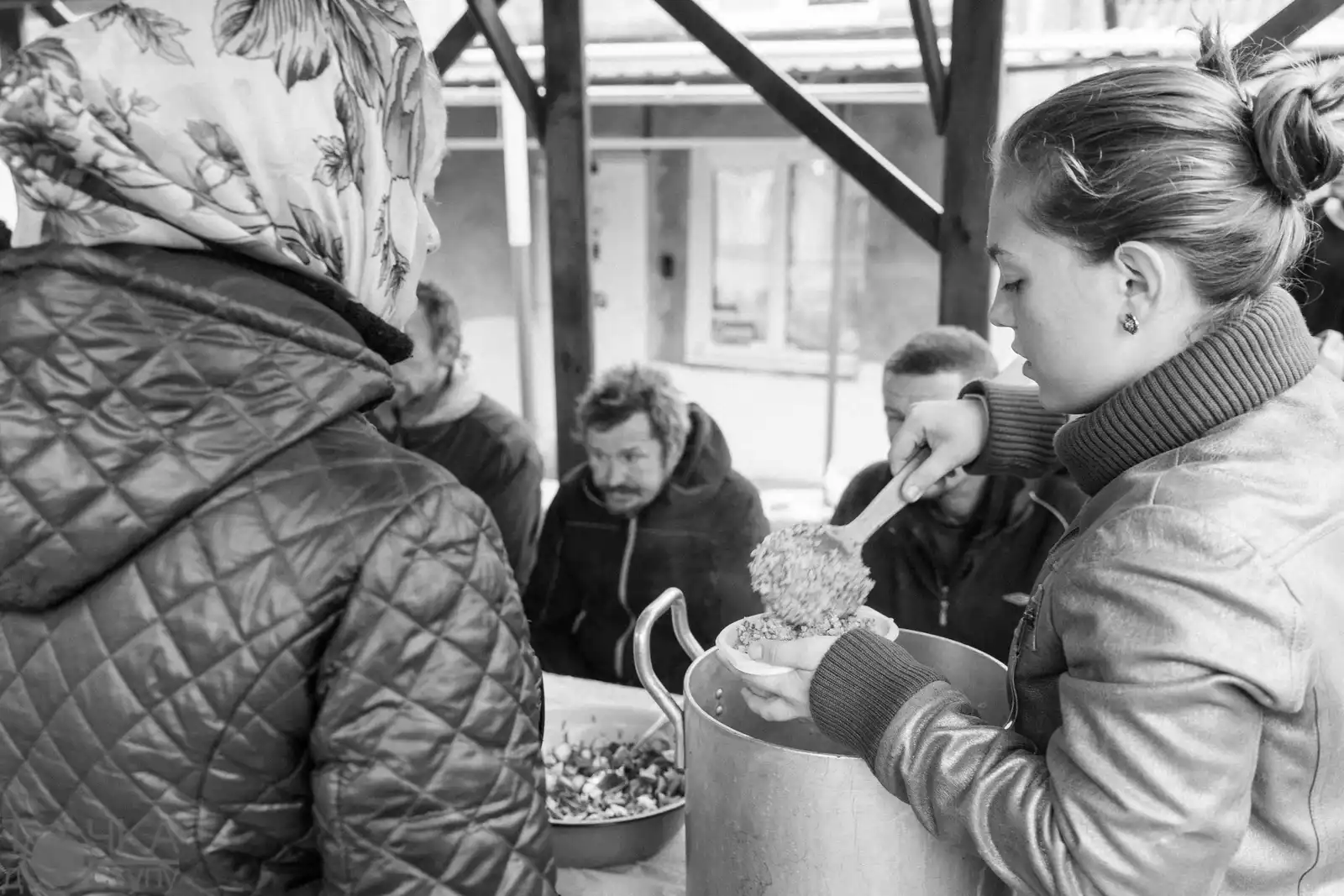 Іноді люди, яким допомогли в організації, самі починають її підтримувати так, як можуть – допомагають готувати обіди, прибирають тощо. Однак постійно, кожен тиждень, готують їжу і роздають її 4-5 чоловік. Час від часу приходять інші, але це, зазвичай разова підтримка.