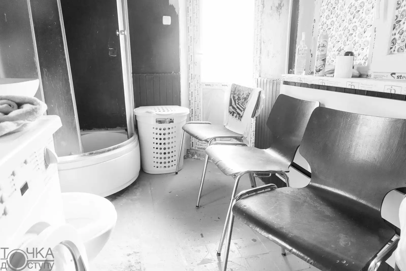 У цьому невеликому приміщені хлопці й дівчата з «Милосердя» вже встигли облаштувати кухню, де готують їжу, та ванну кімнату. По можливості, у вихідні тут влаштовують «банний день», коли безхатченки мають можливість помитися, отримати чисті речі, підстригтися та навіть отримати мінімальну медичну допомогу (переважно обробити рани дезінфікуючими засобами). Такі прості й звичні речі для кожного з нас, але не завжди доступні для безхатченків. Однак, на жаль, такі дні вдається влаштовувати не кожного тижня. Бо, як розповідає Володимир Лєбєдев, ванна кімната облаштована не до кінця й старенький котел часто виходить з ладу. Тоді він потребує ремонту, та зробити його вдається не одразу.