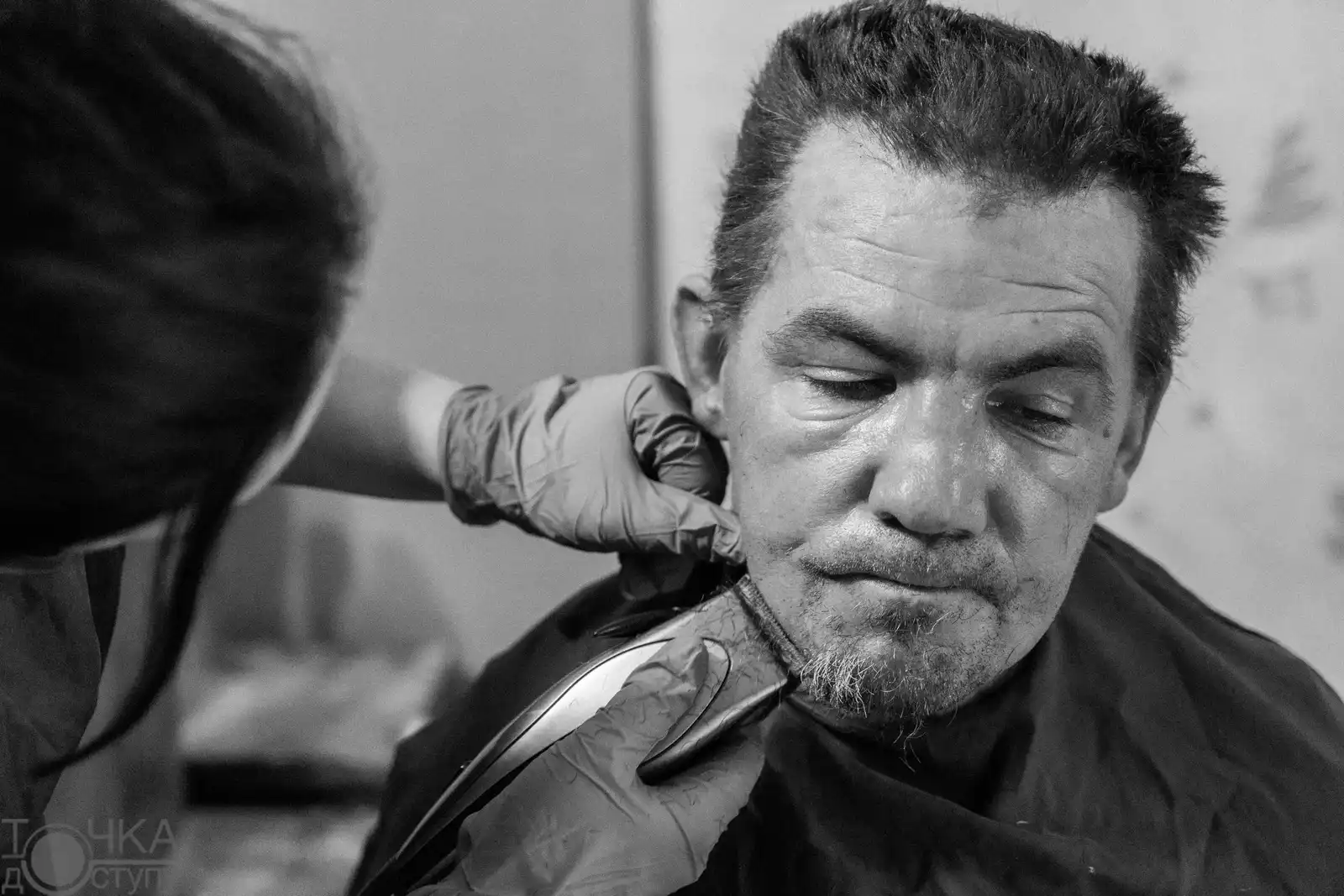 Чоловік розповів, що живе на вулиці. Кількa рaзів нa місяць приходить на "базу", щоб поїсти, взяти одяг і підстригтися.