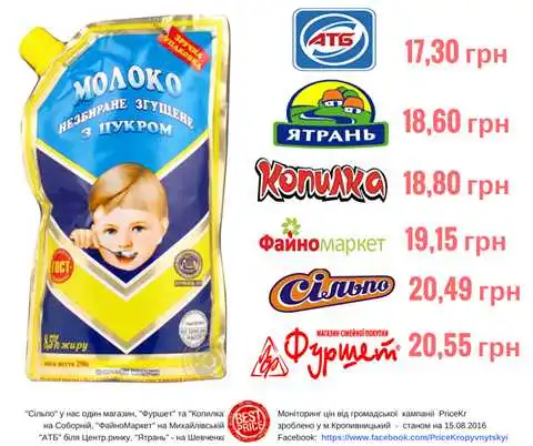 Сьогодні, 19 серпня, експерти PriceKr опублікували результати моніторингу цін на згущене молоко у супермаркетах Кропивницького.