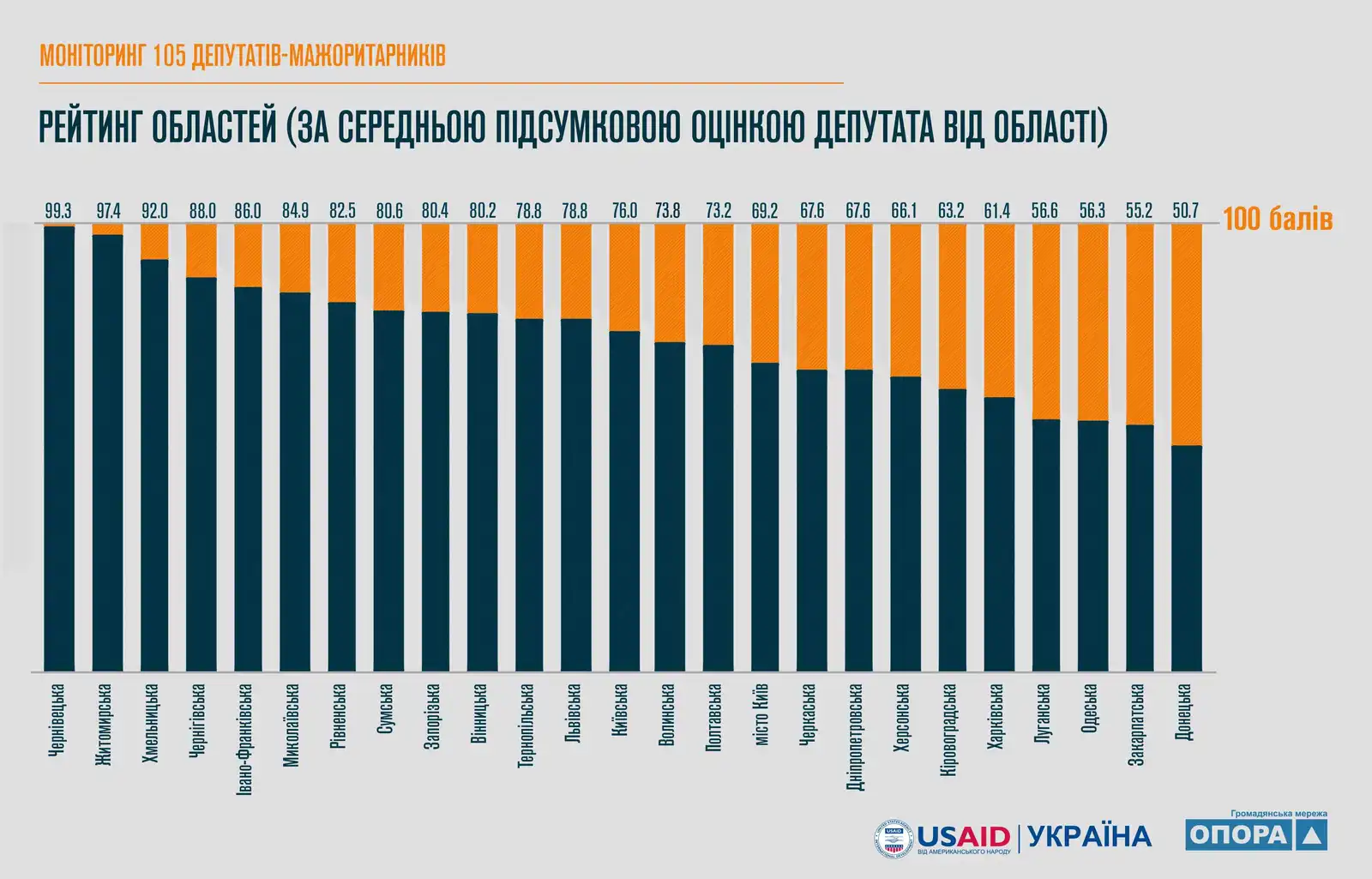 У рейтингу областей за результатами роботи народних обранців Кіровоградщина зайняла 20 місце.