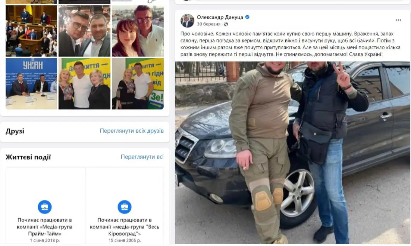 Народний депутат Олександр Дануца придбав холодильник для громадської організації і метал для протитанкових їжаків, а також сприяв доставці вантажу й закупівлі квадрокоптера. Також політик написав у Facebook про купівлю кількох автомобілів для військових.