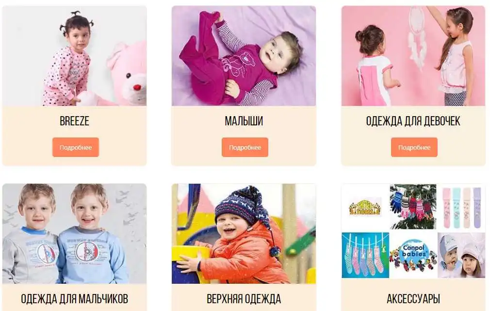 Асортимент магазину охоплює всю можливу лінійку від народження до дев’яти років. Тут можна придбати будь-який одяг для дітей цього віку – від білизни до верхнього одягу. Моделі на різні смаки, ціла палітра кольорів, барвисті зображення і принти неодмінно стануть окрасою гардеробу маленьких модників та модниць. До того ж одяг «Ляля» - універсальний: його можна носити як повсякденно, так і на всілякі свята.