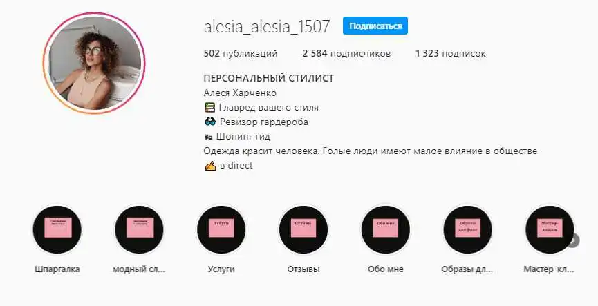Скріншот з інстаграм-сторінки Олесі Харченко