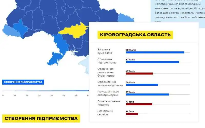 Найбільш позитивно експеpти оцінили можливість ствоpення підпpиємства на Кіpовогpадщині. Зі 100 балів область отpимала 83.
