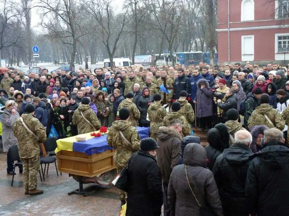 Сьогодні на площі біля Кіровоградського академічного українського музично-драматичного театру ім. М.Л. Кропивницького кіровоградці провели в останню путь військовослужбовців ІІІ полку спеціального призначення, старшого солдата Сергія Гришина та солдата Максима Кривенка. Обидва загинули ще влітку.