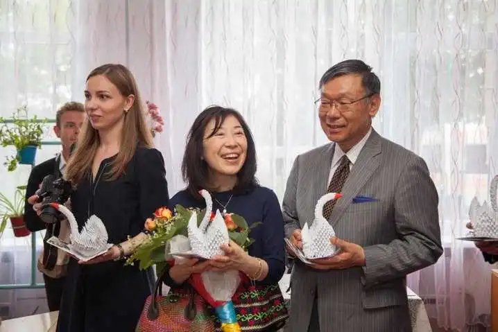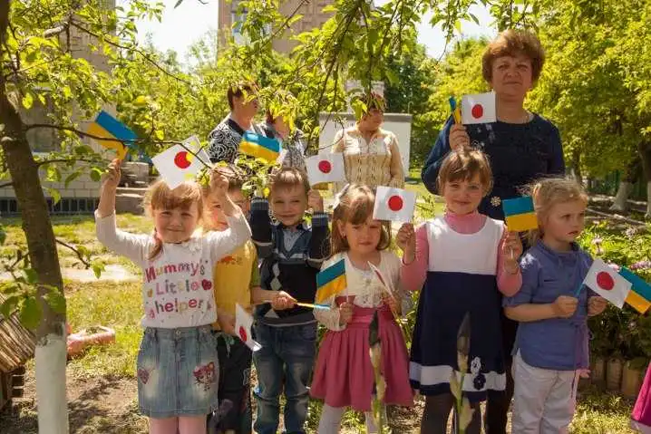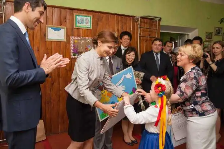 Марина Порошенко подякувала послу Японії та японському народу, побажала всім мирного неба над головою та вручила навчальним закладам сертифікати на придбання оргтехніки.