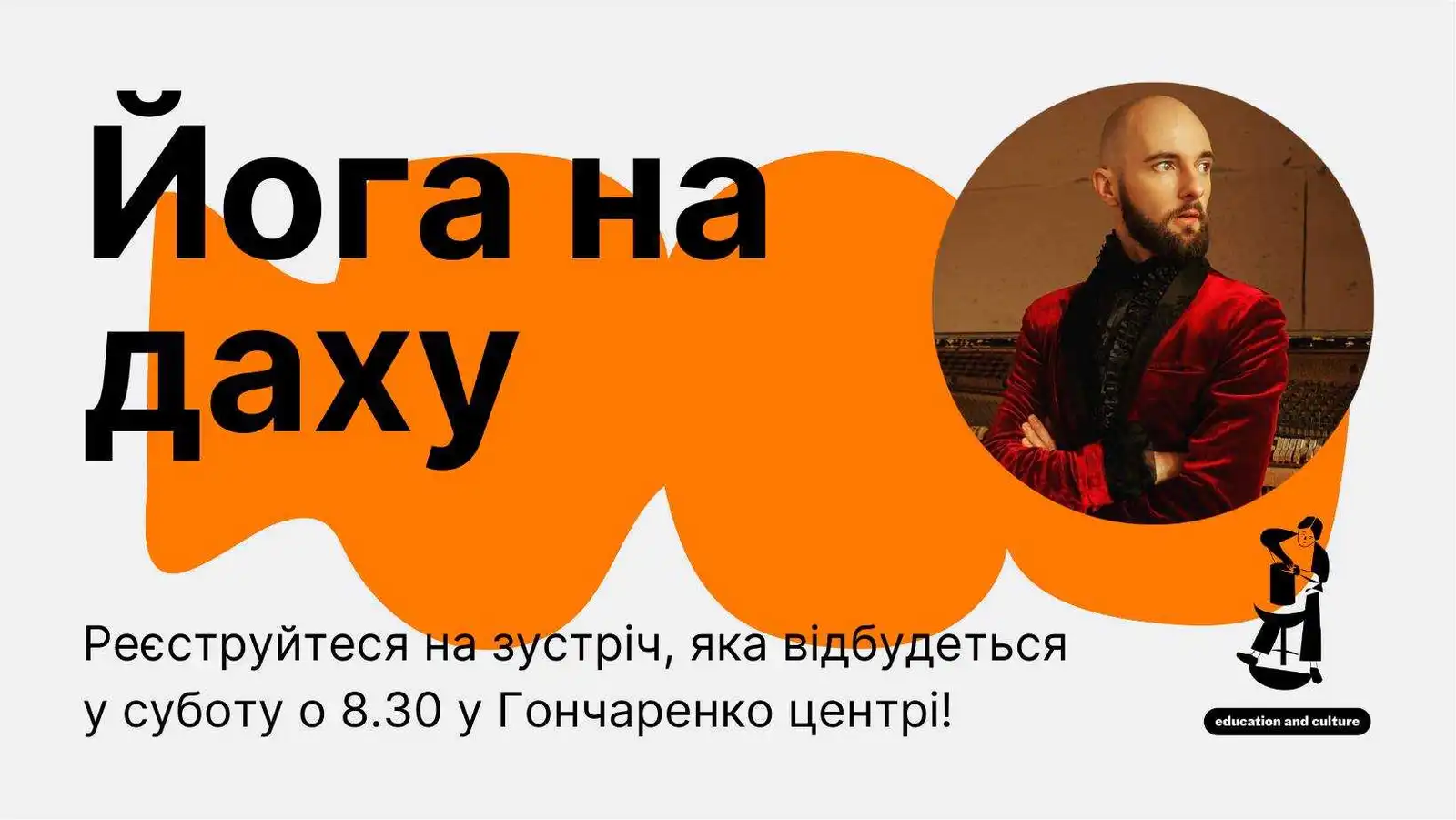Дбати про своє фiзичне та психологiчне здоров'я можна по-рiзному. Кропивницький Гончаренко центр запросив кiлькох найкращих тренерiв та тренерок з йоги, щоб вони по черзi, раз на тиждень, проводили для вас йогу на свiжому повiтрi. Наступна зустрiч – у суботу, 14 серпня. Проводитиме її вiдомий хореограф i танцiвник Єгор Похиленко – на даху у Гончаренко центрi о 08:30.