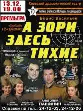 Вистава Київського драматичного театру «А зорі тут тихі» відбудеться в залі обласної філармонії 13 грудня о 19.00.Про це Точці доступу повідомили організатори.Вартість квитка від 80 до 180 грн.Живий звук.