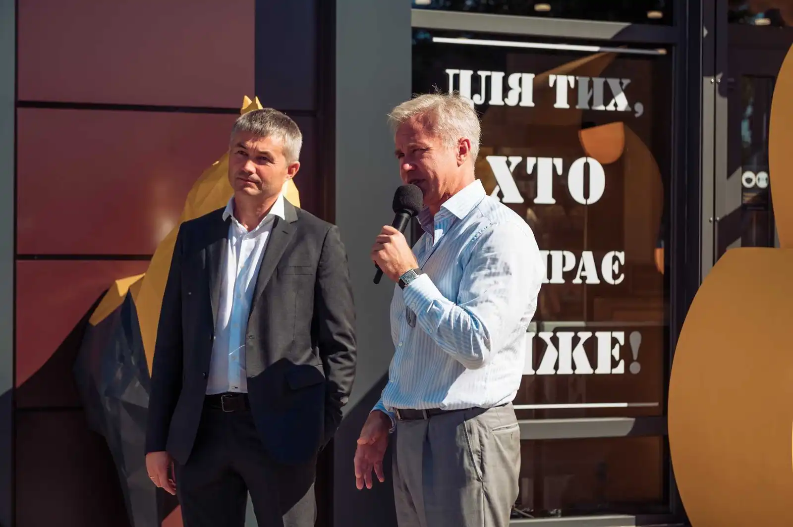 На відкриття магазину завітав голова правління агрохолдингу МХП Юрій Косюк та його бізнес-партнер Анатолій Потапов (ТОВ "Універсал-Плюс").