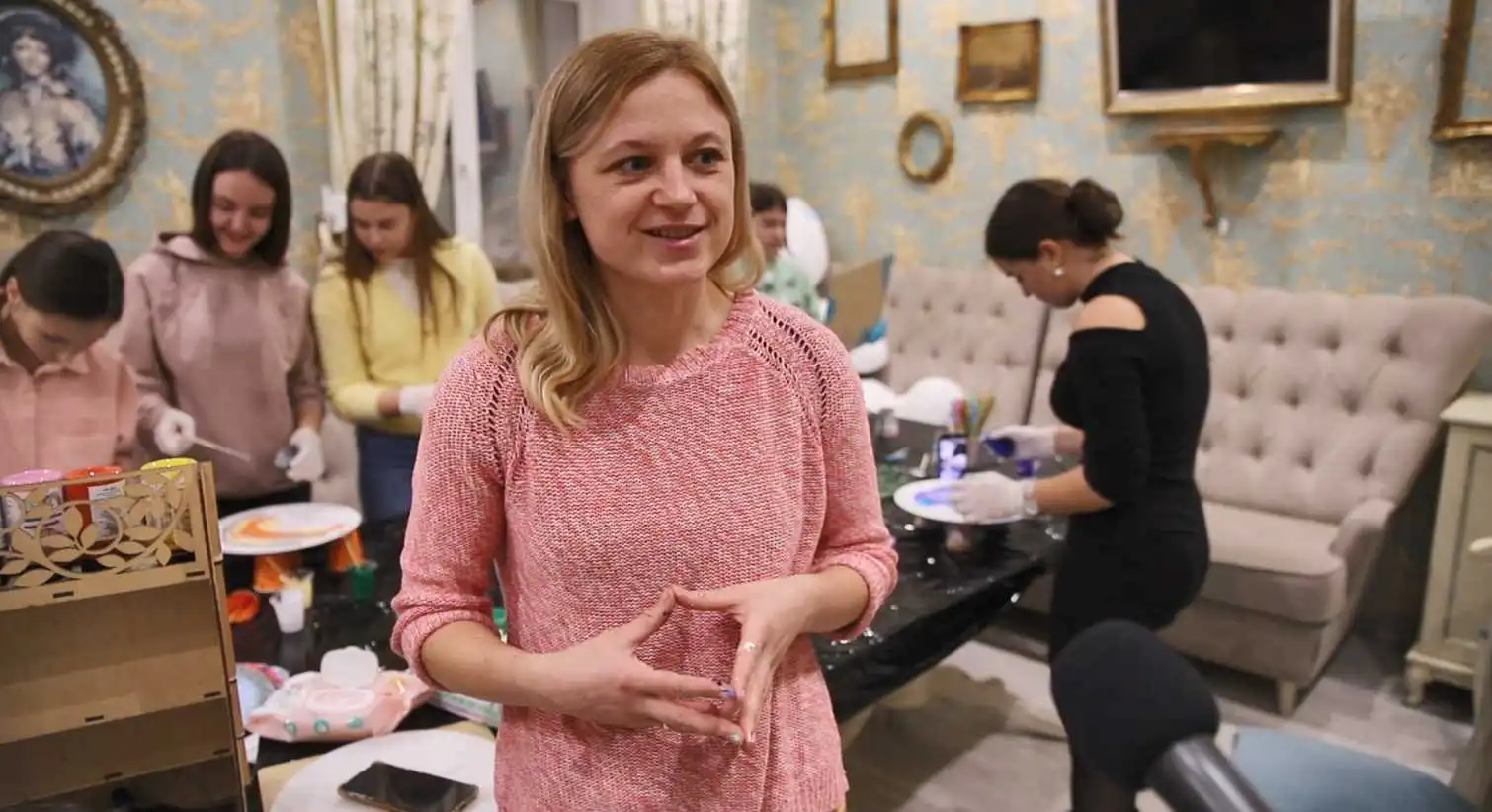 Майстриня розповідає, що під час майстеркласу з дітками багато говорять про емоції: які вони бувають, чому вони виникають та про їхню важливість. Зазначає, що з дорослими добре працює групова арттерапія.