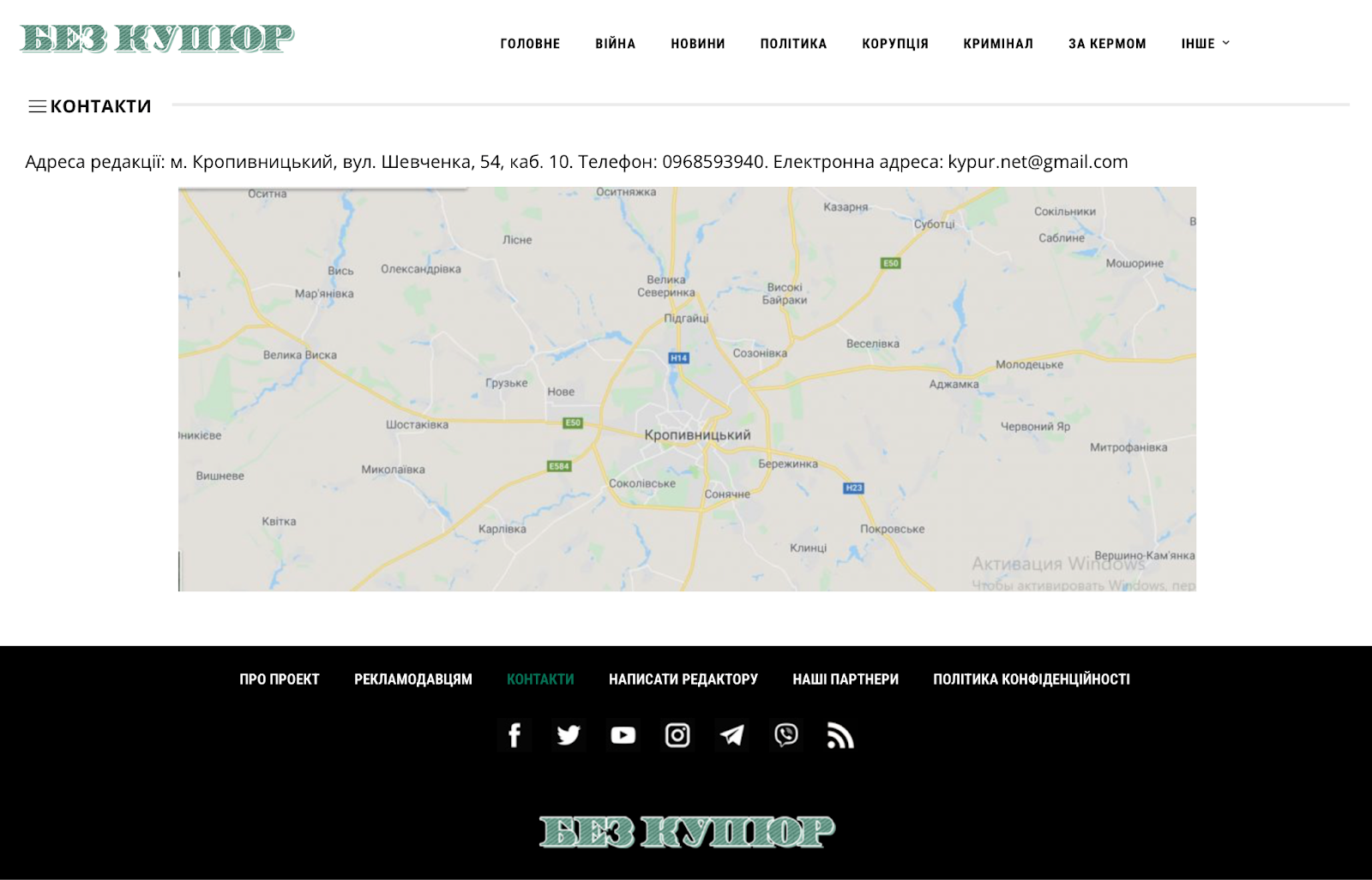 Всі необхідні контактні дані видання. Скрин: сайт “Без купюр”