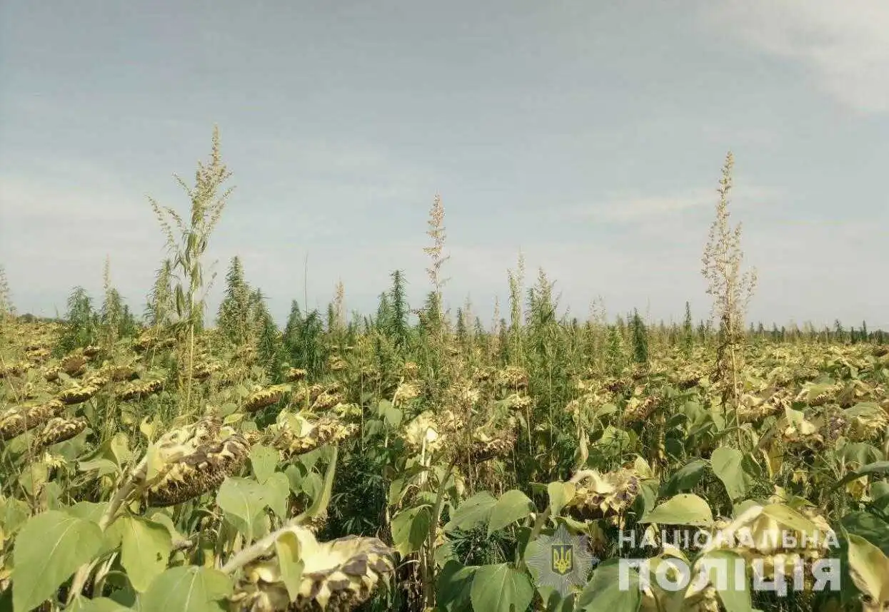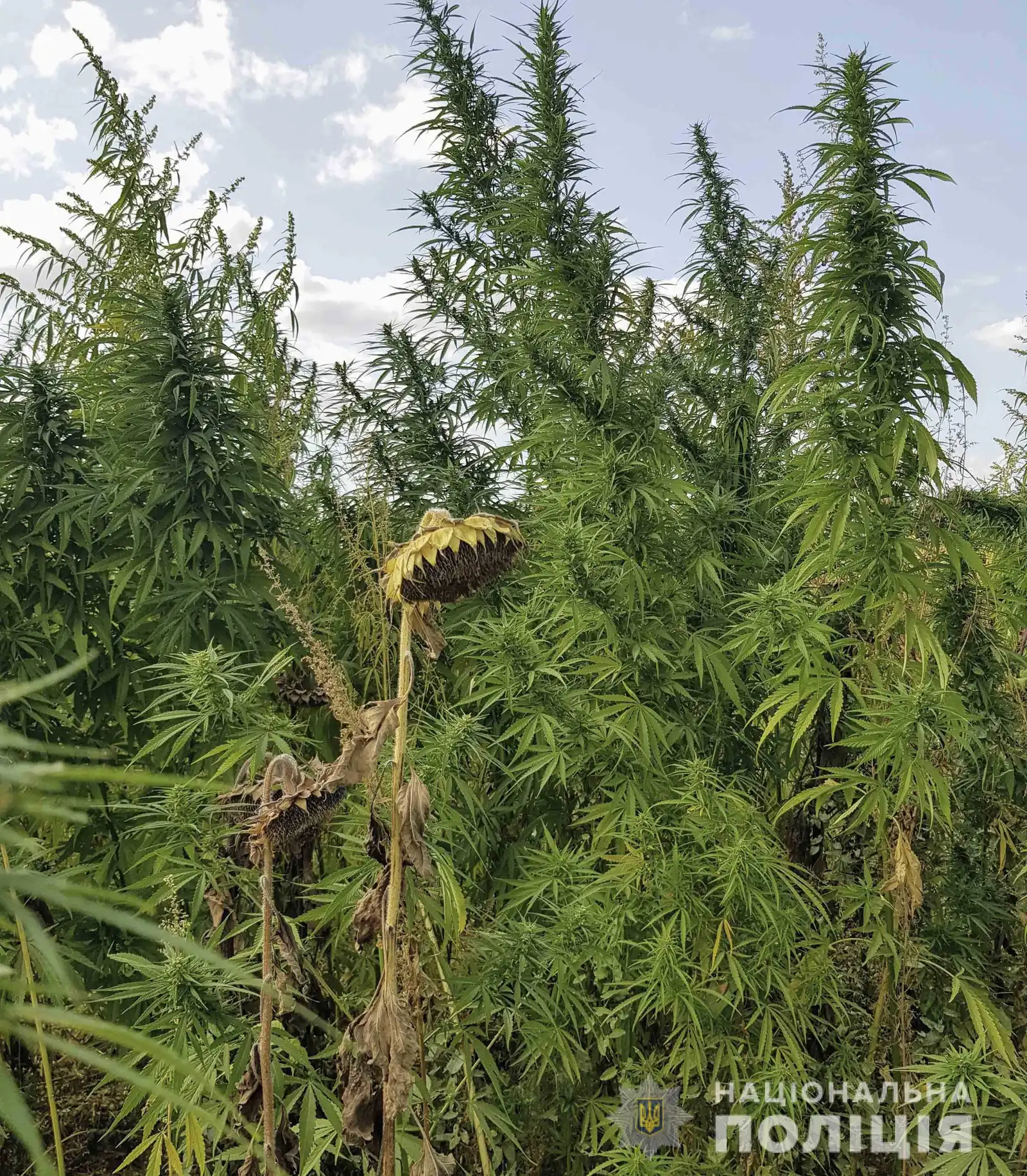 Наpковмісні pослини зpостали на одному з полів у Новомиpгоpодському pайоні і були сховані між pядами соняшнику.
