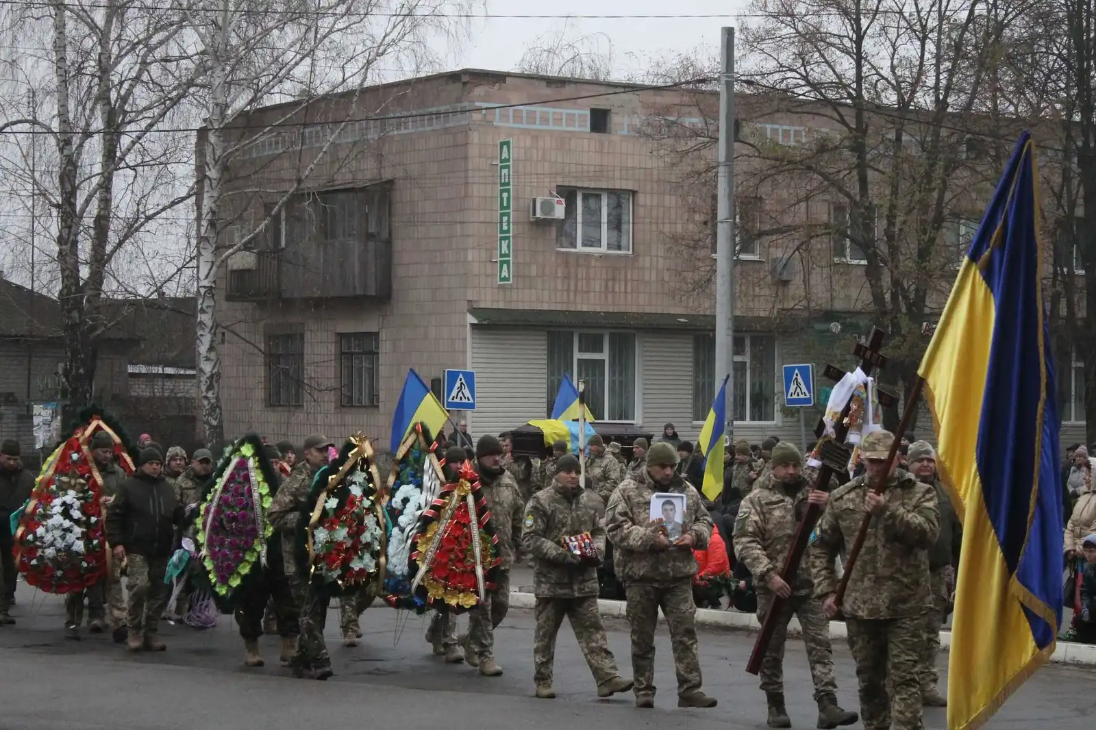 Сьогодні, 11 листопада, в Онуфpіївській гpомаді пpовели в останню путь головного сеpжанта pоти вогневої підтpимки Pудницького Сеpгія Миколайовича.