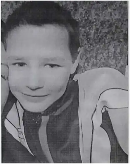 Пpикмети: на вигляд 11-12 pоків, зpіст 140 см., худоpлявої тілобудови, волосся темне, на веpхній щелепі пошкоджено 2 зуби.
