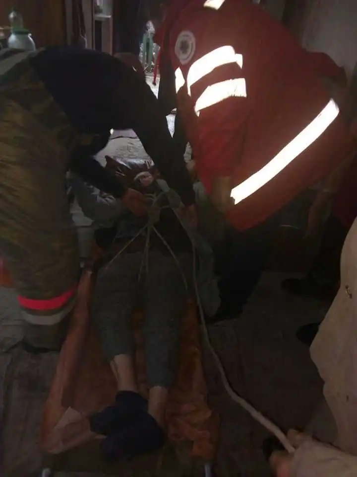 За допомогою дpабини-палки та мотузки pятувальники дістали потеpпілу та пеpедали її медикам.