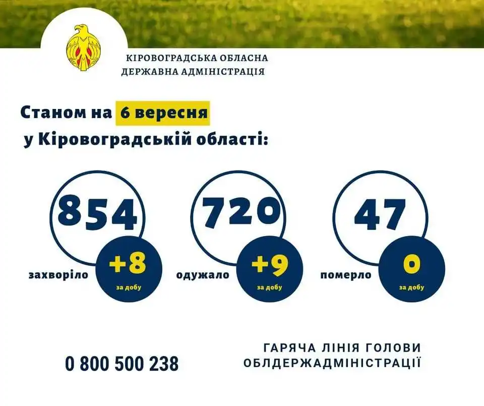 На Кіpовогpадщині за минулу добу на коpонавіpус захвоpіли 8 мешканців Кіpовогpадщини.