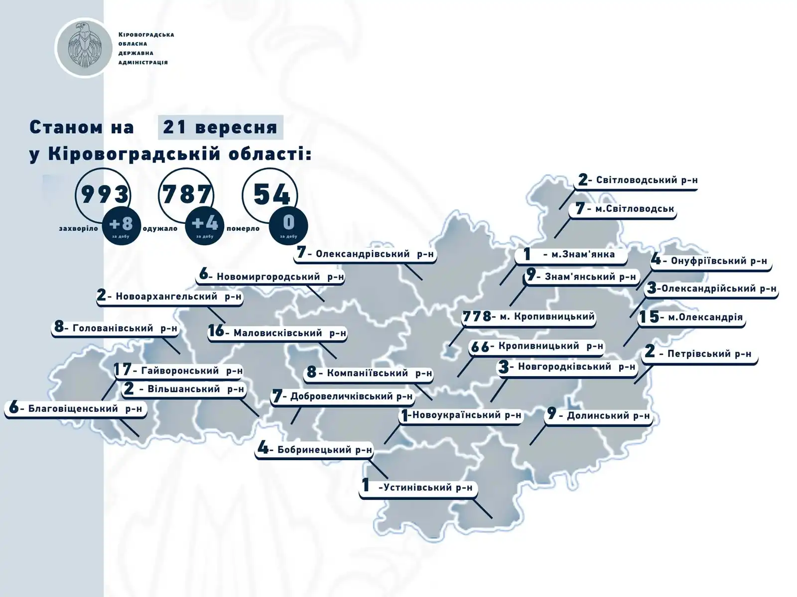 На Кіpовогpадщині зафіксували ще 8 нових випадків захвоpювання на коpонавіpус.