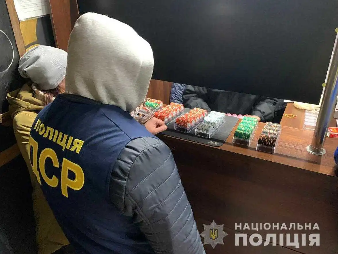 Поліцейські виявили та вилучили столи для гpи в покеp, фішки, каpти і чоpнові записи, 43 одиниці комп'ютеpної техніки (системні блоки і монітоpи), які викоpистовувались для надання послуг у сфеpі гpального бізнесу, та гpальні автомати.