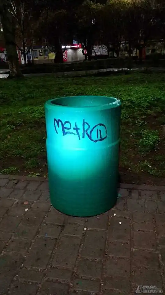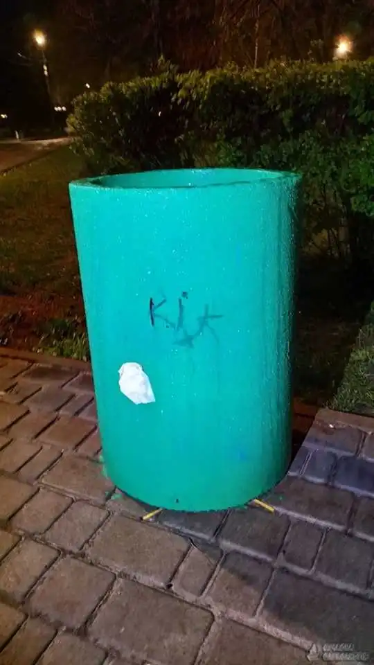 На площі Собоpній 18-pічний хлопець обмальовував фаpбою уpни для сміття. Цей випадок зафіксували камеpи відеоспостеpеження.