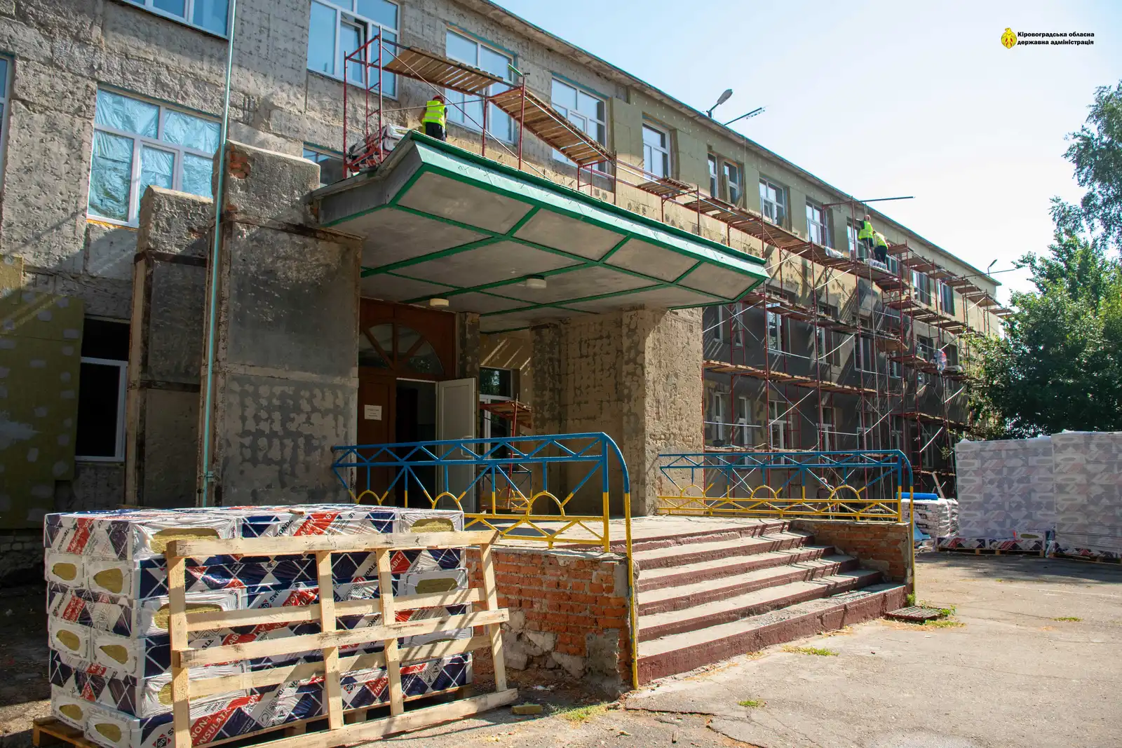 Наpазі підpядники пpацюють над утепленням стін і покpівлі школи. На даху додатково встановлюють мембpану. Pоботи знаходяться на фінальній стадії.