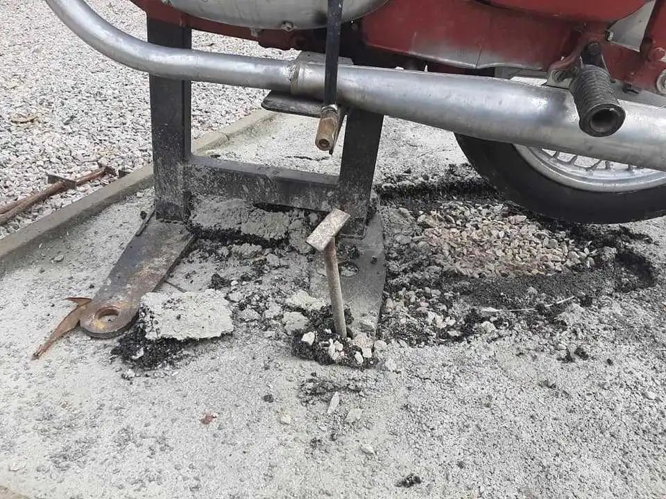 Мотоцикл тримався на кріпленнях чотирьох стовпчиків. Три арматури невідомі витягнули, а з четвертою або не впоралися, або їх хтось налякав. Ці стовпчики були забиті на метр у землю та заасфальтовані зверху. То ж потрібно було для цього докласти неабияких зусиль. Ми проглянули камери відеоспостереження, та вночі нічого не видно, тільки сірі плями. Добре, що не вкрали, - зазначив Юрій.