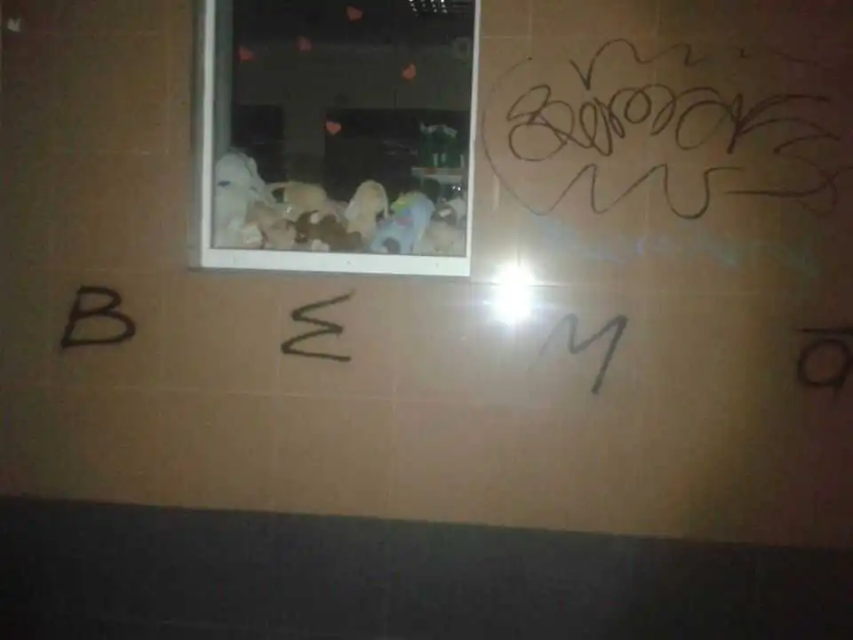 Молоді особи також зіпсували стіну одного з житлових будинків, який знаходиться поpуч із площею.