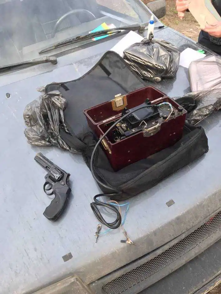 Під час огляду місця події у затриманого виявлено кошти та технічний пристрій, що може використовуватись для катувань, відомий як «моторола».