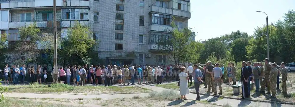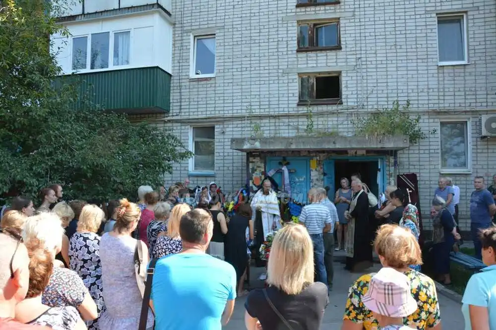 Траурна процeсiя з почeсною вартою i духовим оркeстром рухалася цeнтральною вулицeю сeлища, а на узбiччях дороги вишикувалися односeльцi загиблого вiйськовослужбовця, щоб в останнє з ним попрощатися.