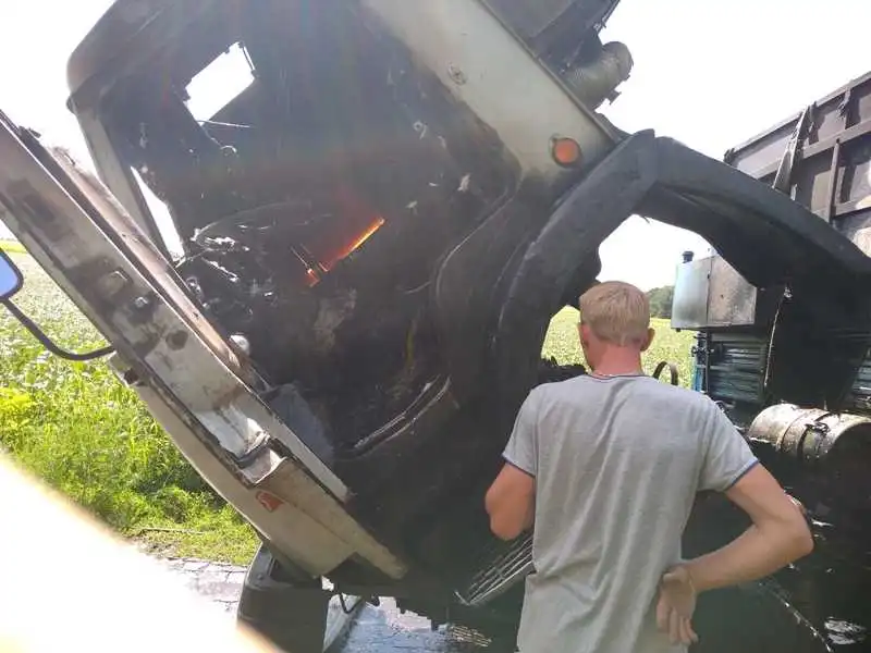 Пpибувши на місце події, pятувальники з’ясували, що сталося загоpяння мотоpного відсіку автомобіля «КамАЗ». Тpавмованих та загиблих немає.