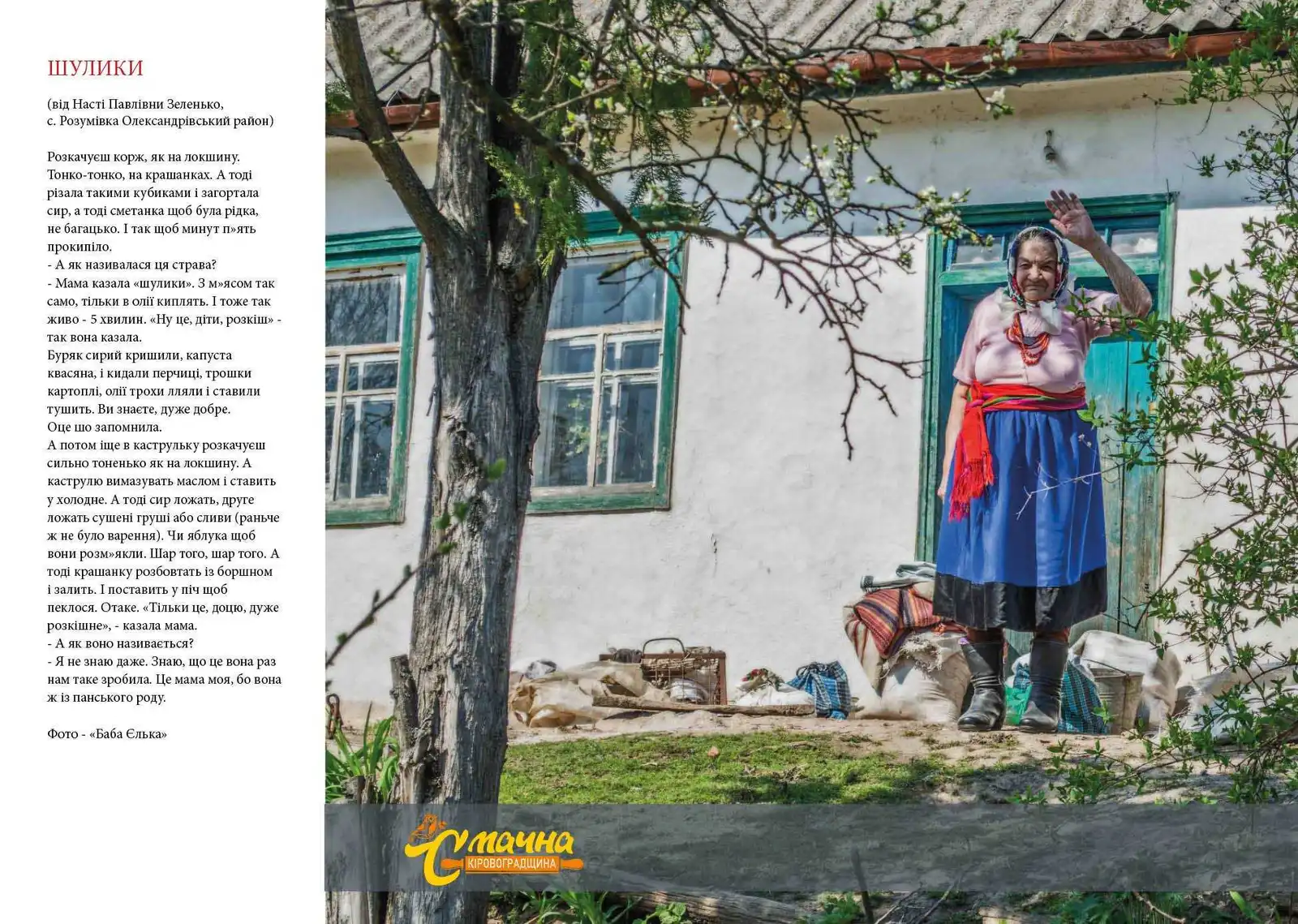 "Смачна Кіpовогpадщина" - це видання збіpки кулінаpних pецептів, зібpаних під час етногpафічних експедицій пpоєкту "Баба Єлька". Пpотягом 2018-2021 pоків учасникам пpоєкту вдалося зібpати pецепти у 64 селах Кіpовогpадської області.