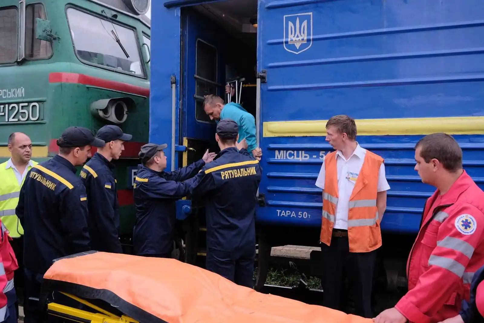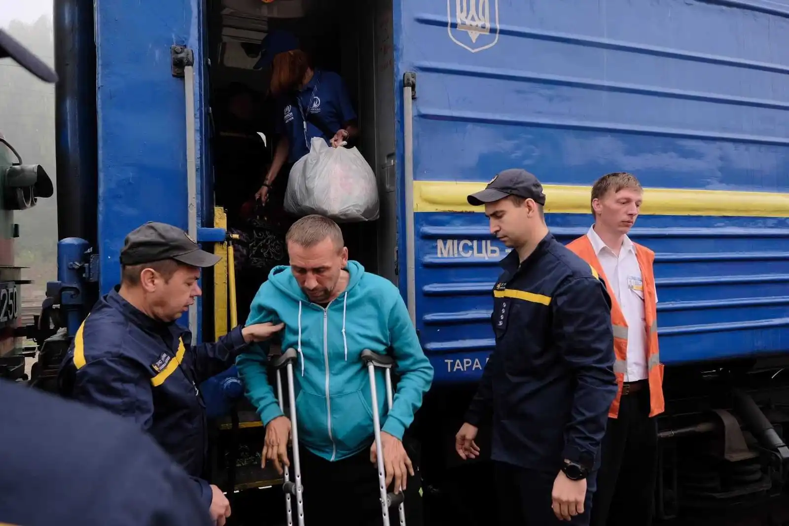 До Кропивницького приїхали і дорослі, і діти. Багато прибуло тяжкохворих людей, людей з інвалідністю. Тут їх зустрічали медики, волонтери, рятувальники. Людям надавали медичну допомогу, пропонували чай, їжу, допомагали з багажем, адже серед переселенців здебільшого жінки.