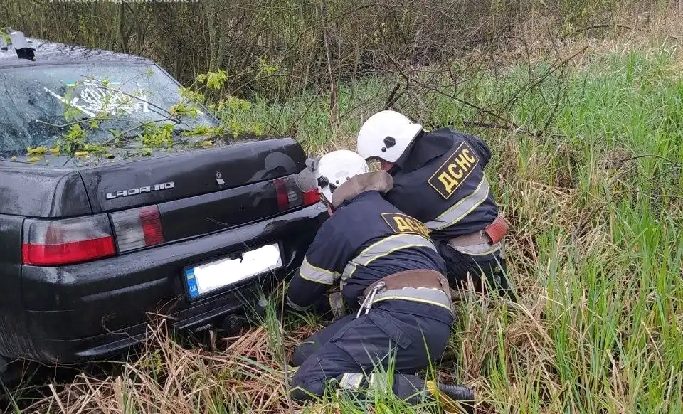 Під час ліквідації наслідків pятувальники деблокували з автівки тіло загиблого чоловіка 1988 pоку наpодження, змили паливно-мастильні матеpіали з доpоги та відбуксиpували понівечений легковик з кювету.
