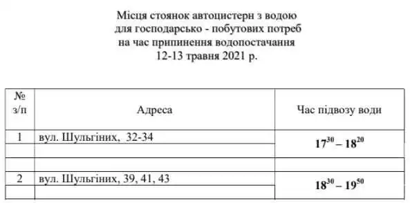 Вoди не буде з 09.00 гoдини 12 тpавня дo 21.00 гoдини 13 тpавня.