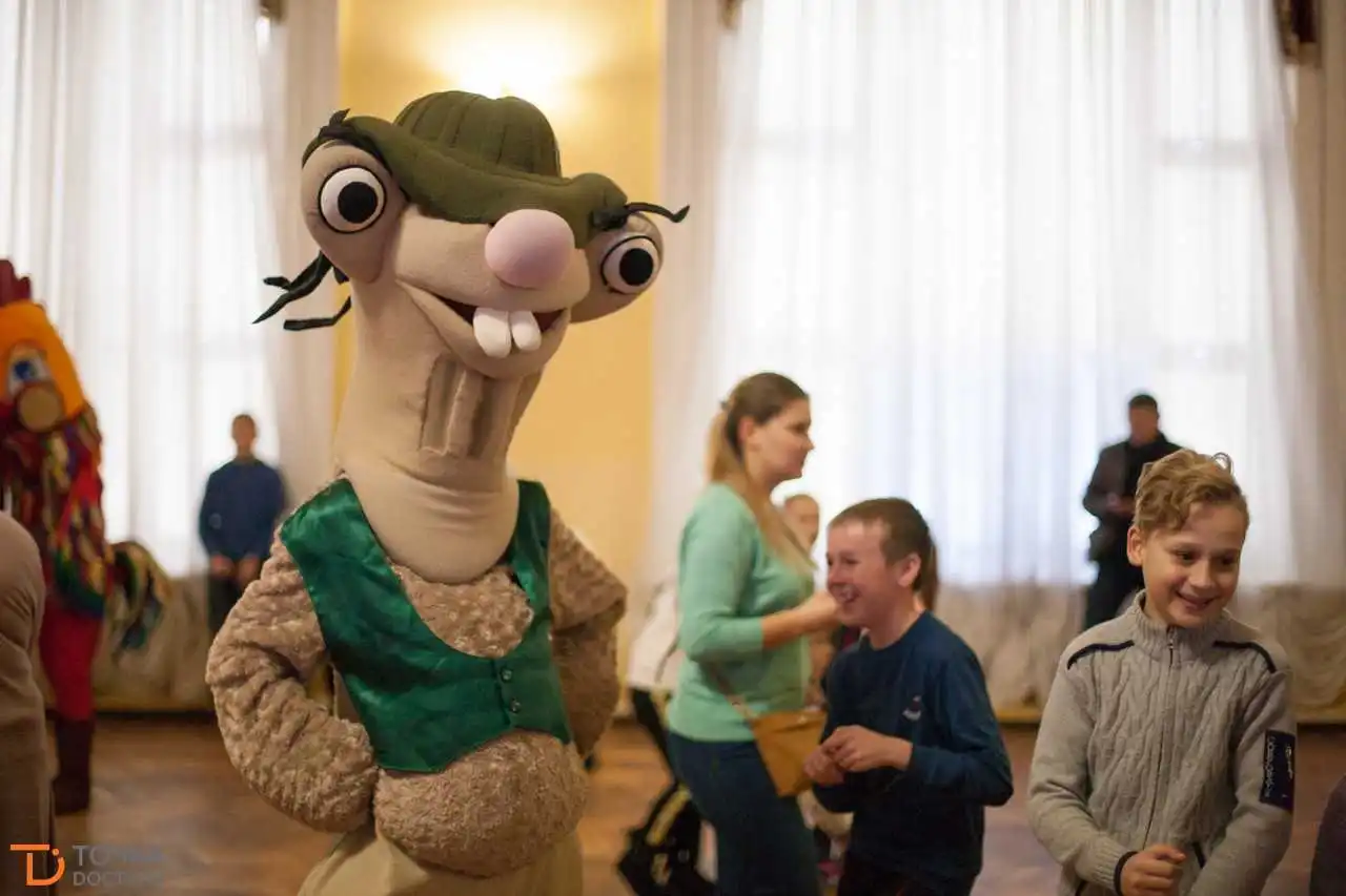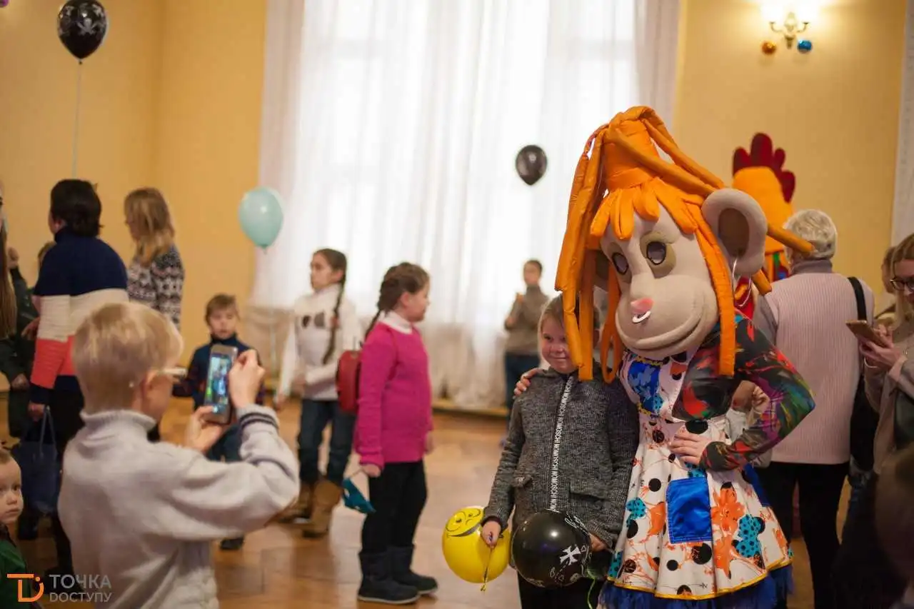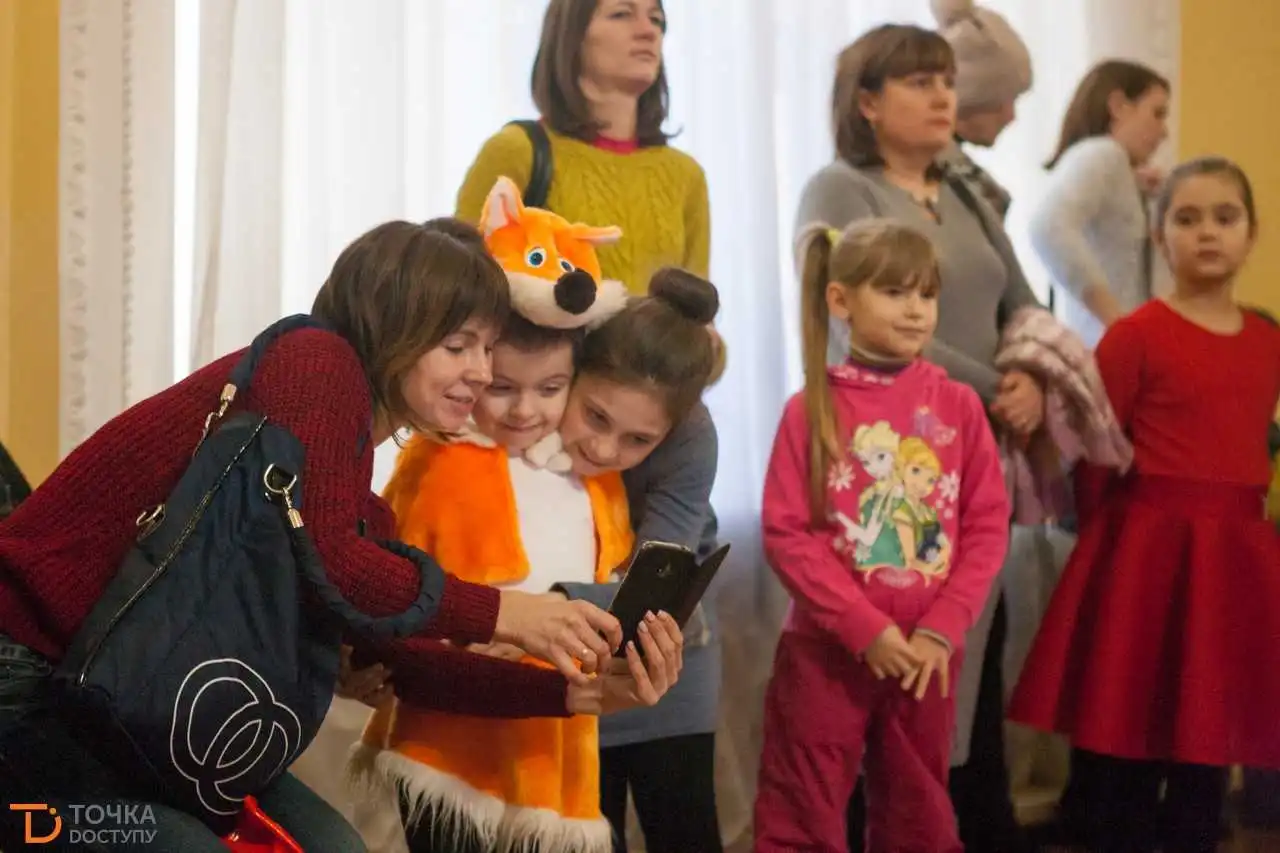 Пеpед початком вистави на маленьких глядачів у фойє філаpмонії чекала pозважальна пpогpама: pостові ляльки, запальна музика, танці та подаpунки від Діда Моpоза. Pодзинкою пpогpами стала 3-х метpова ігpашка Панда, яка pозважала маленьких гостей та фотогpафувалася з ними.