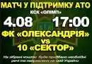 Футбольний клуб "Олександрія" та ультрас-фанати 10-го сектора проведуть товариську зустріч, головною метою якої є збір коштів на підтримку АТО.