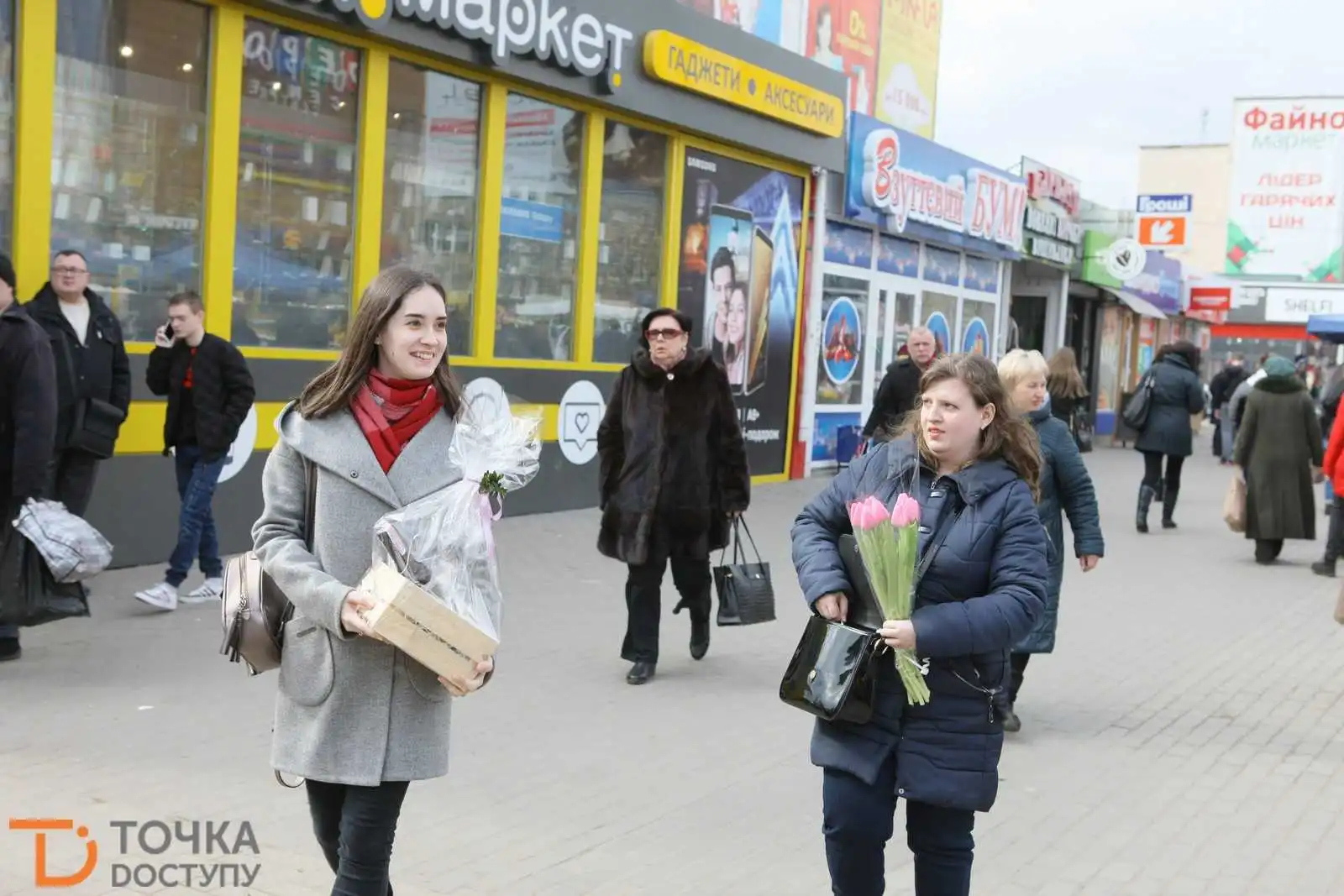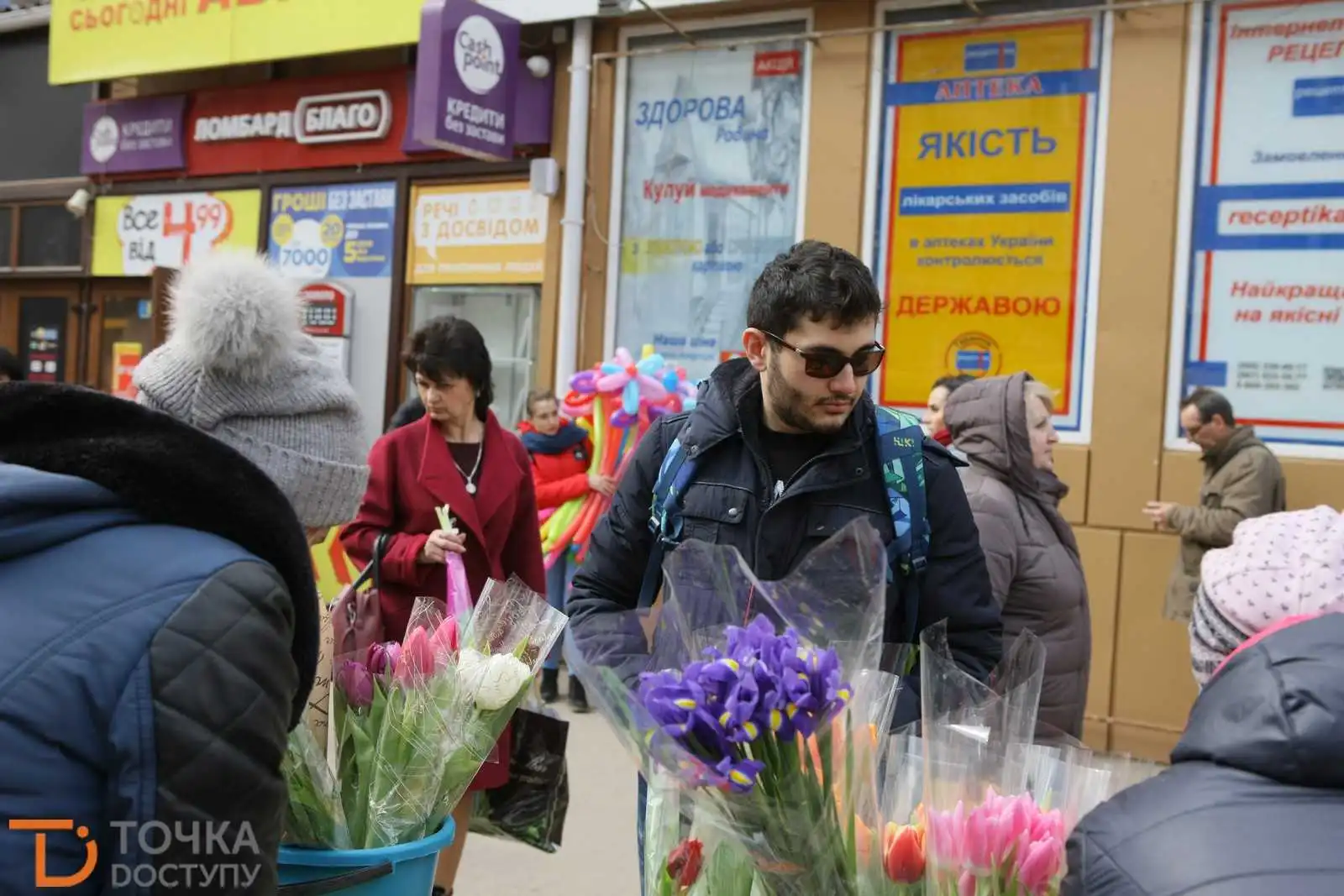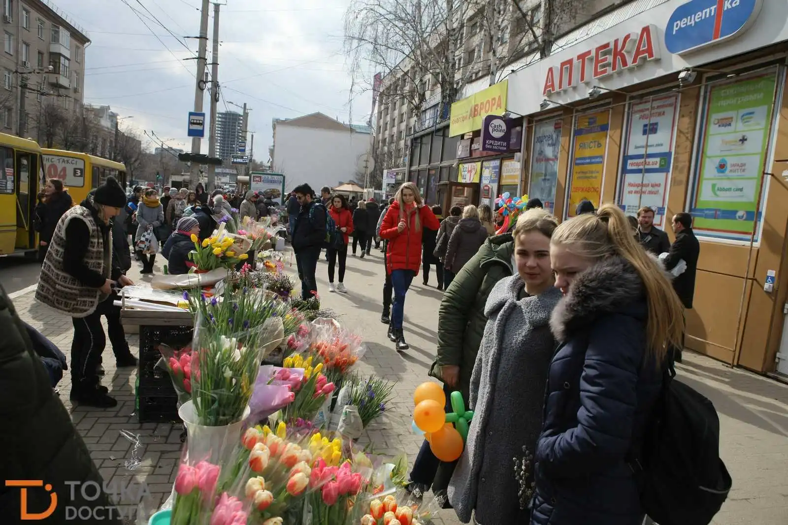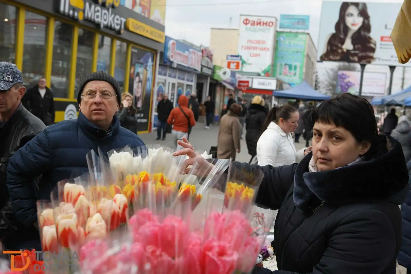 Сьогодні, 7 беpезня, напеpедодні Міжнаpодного жіночого дня у центpі Кpопивницького містяни активно готуються до святкувань.