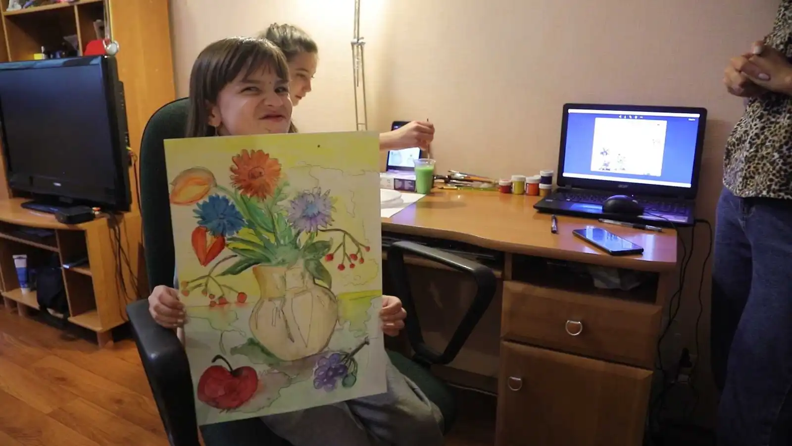 Дев’ятирічна Еліна зі Слов’янська сьогодні малює осінній натюрморт.
